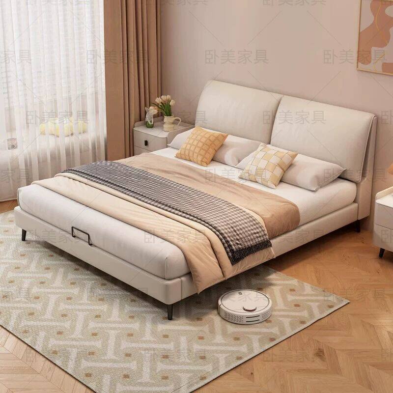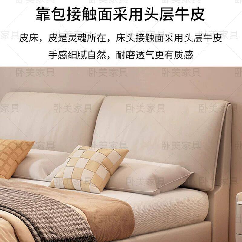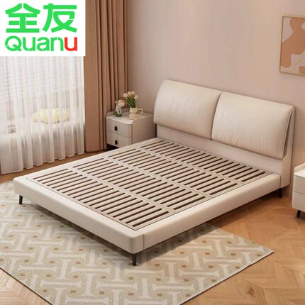 全友家居官网法式奶油风大象耳朵真皮床现代简约主卧大床1米8双人