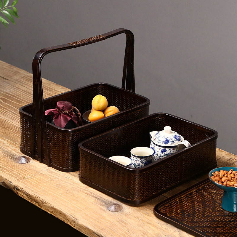 手工竹编复古提篮茶具收纳盒便携旅行提盒中式食盒酒店野餐竹篮