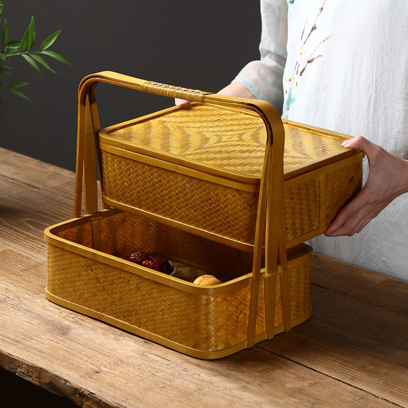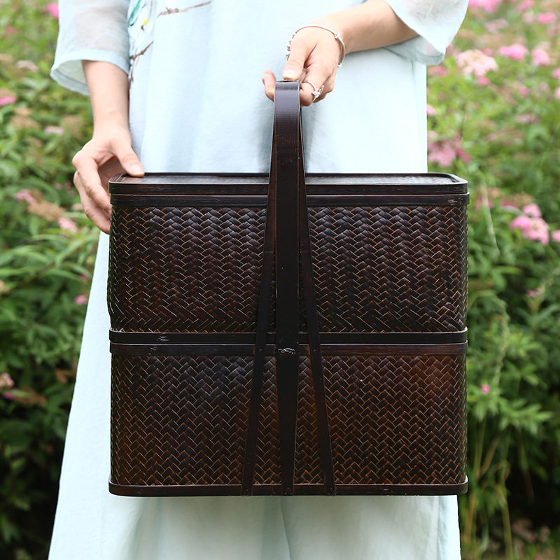 竹编复古提篮茶具收纳盒中式食盒