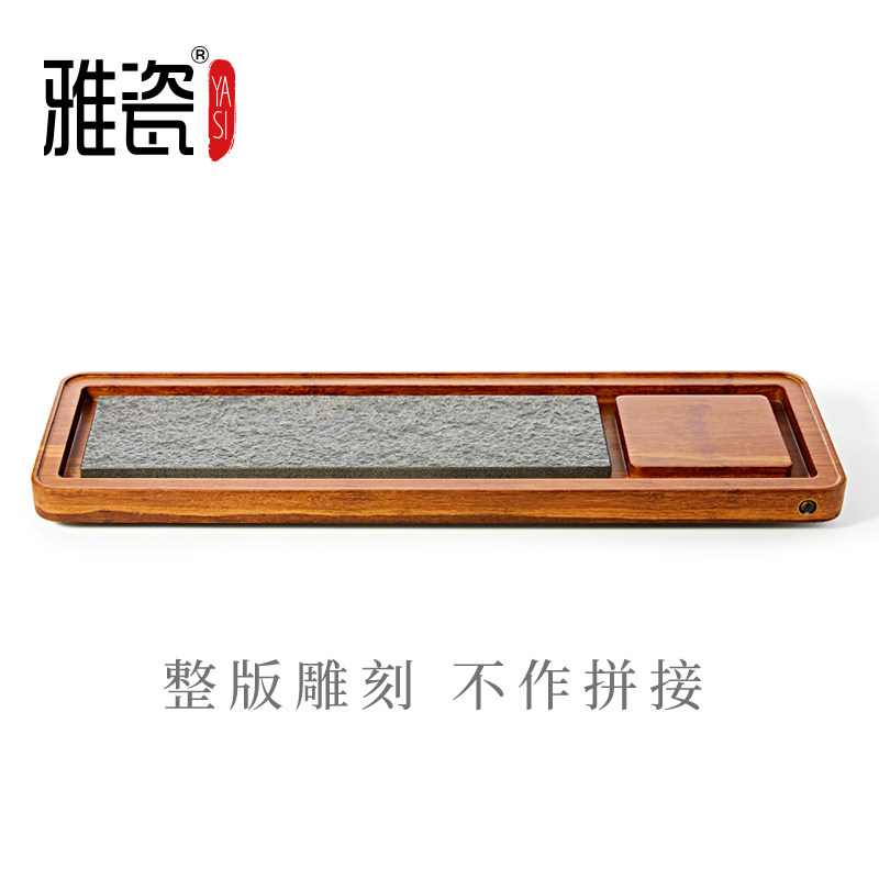 雅瓷功夫茶具茶盘天然乌金石茶台漏水茶托竹制储水排水式茶盘