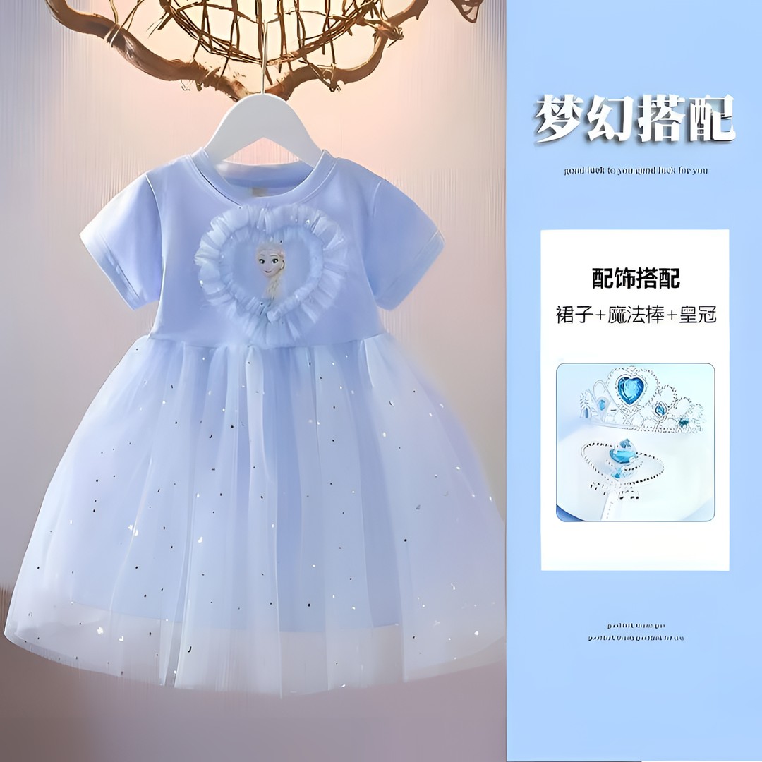 女童夏季艾莎公主裙洋气儿童网纱裙连衣裙裙子爱莎公主裙蓬蓬纱