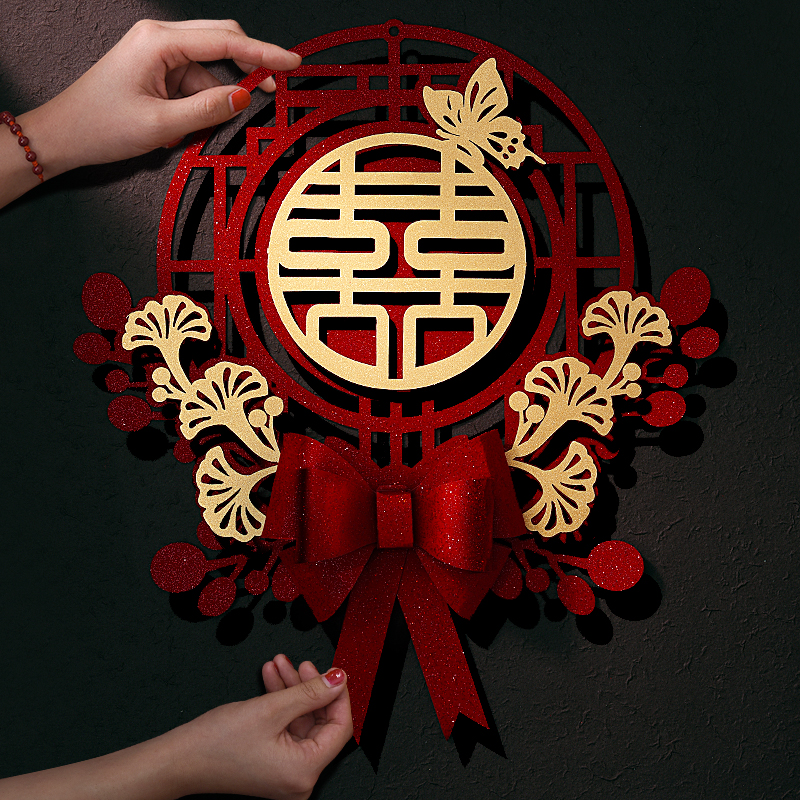 结婚喜字贴男女方新房大门婚礼专用闪耀囍字门贴婚房装饰用品大全