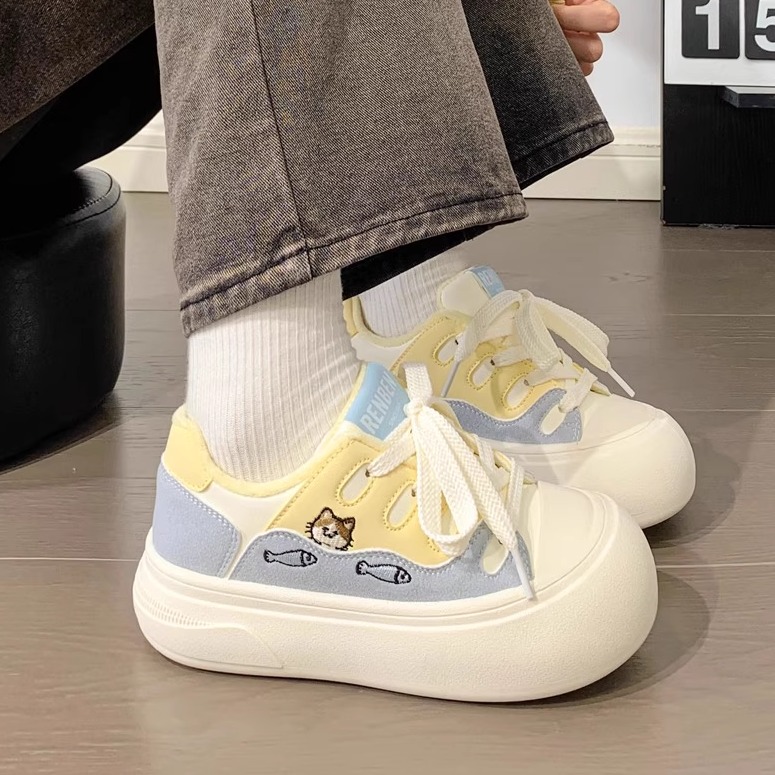 人本可爱小猫加绒小白鞋女冬季新款原创小众保暖二棉鞋学生大头鞋