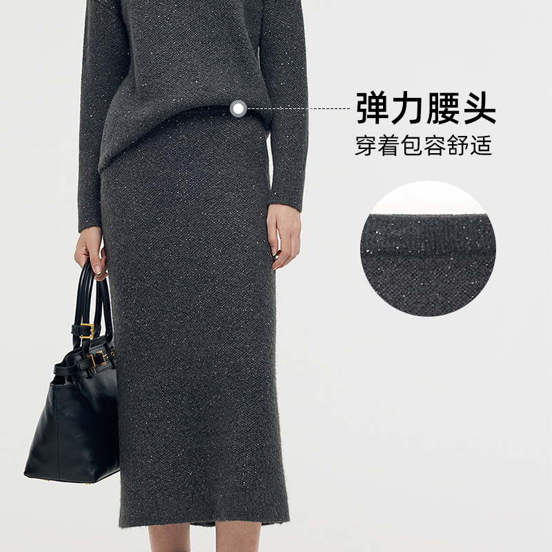 歌莉娅半身裙女秋冬新款针织气质设计感包臀中长裙1CNC2G030