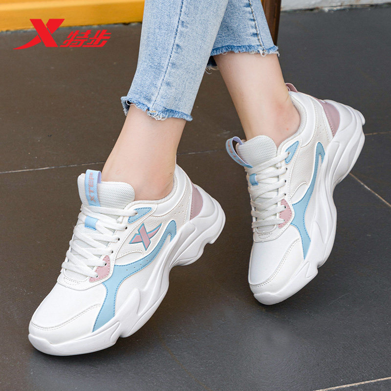 特步女鞋皮面运动鞋女士2025新款冬季跑步鞋官方旗舰店女款老爹鞋
