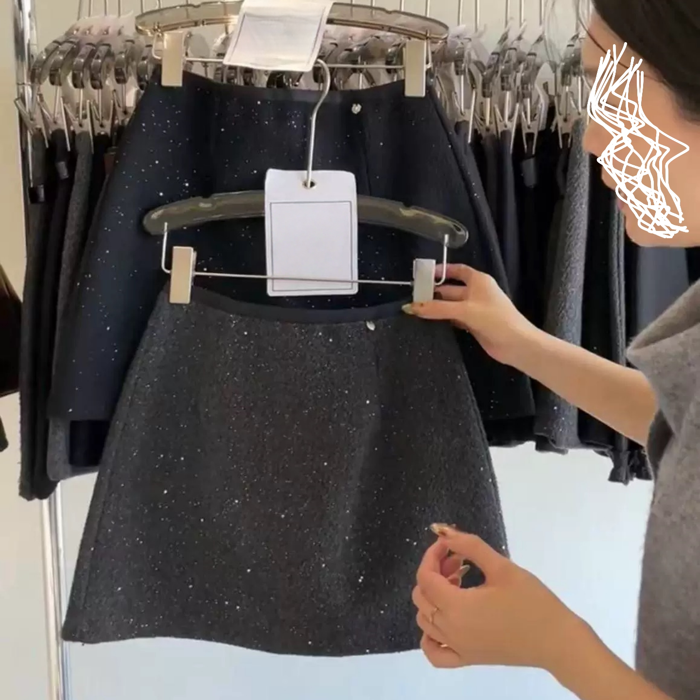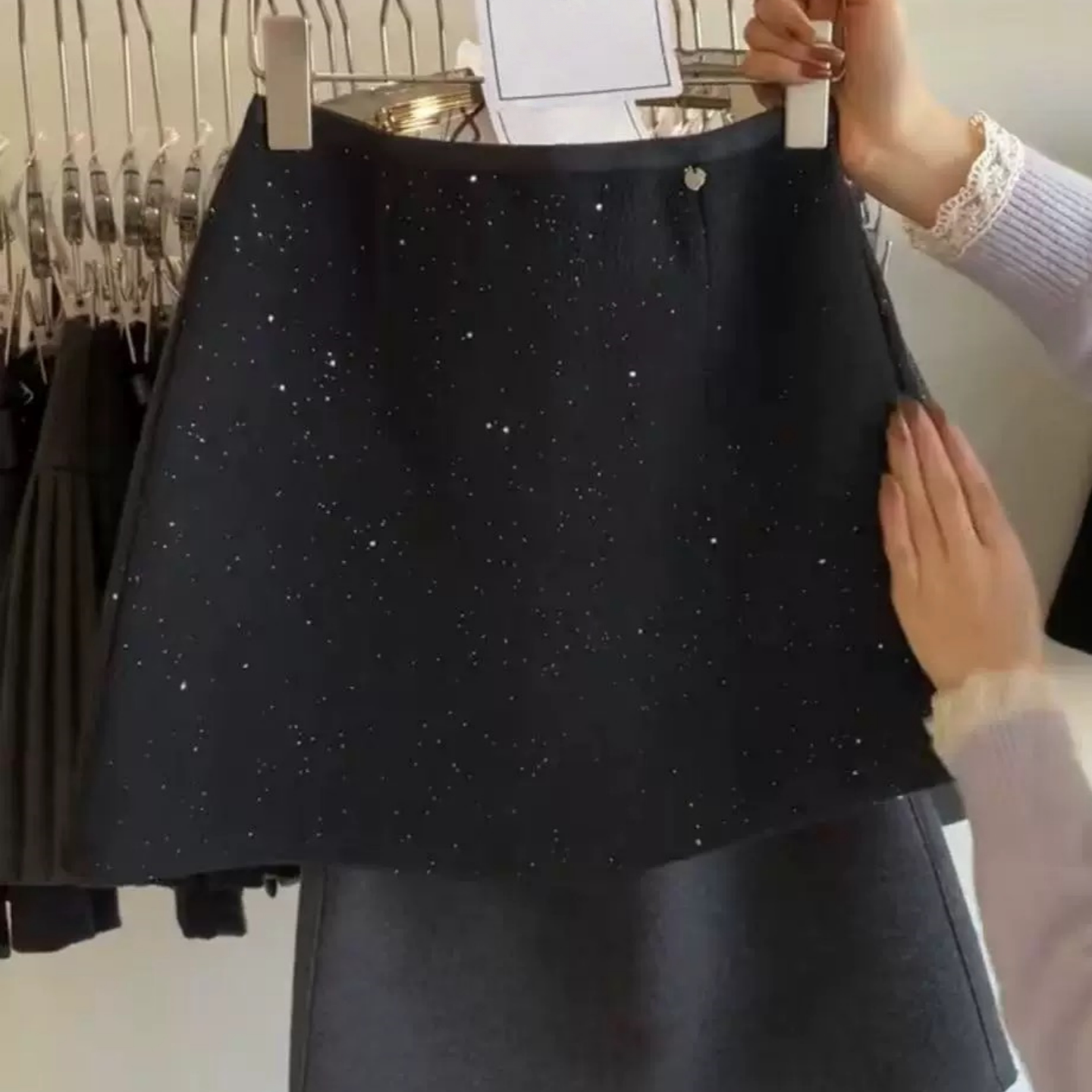 大码法式高级感闪闪包臀半身裙女秋季胖mm高腰遮胯显瘦a字短裙子