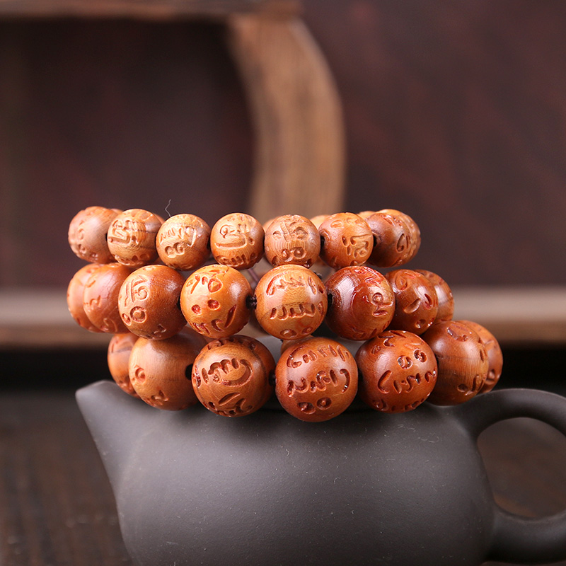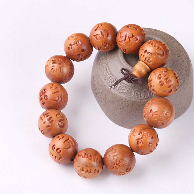 桃木六字真言手链手串佛珠大明咒佛具手镯饰品情侣款中国风新古典