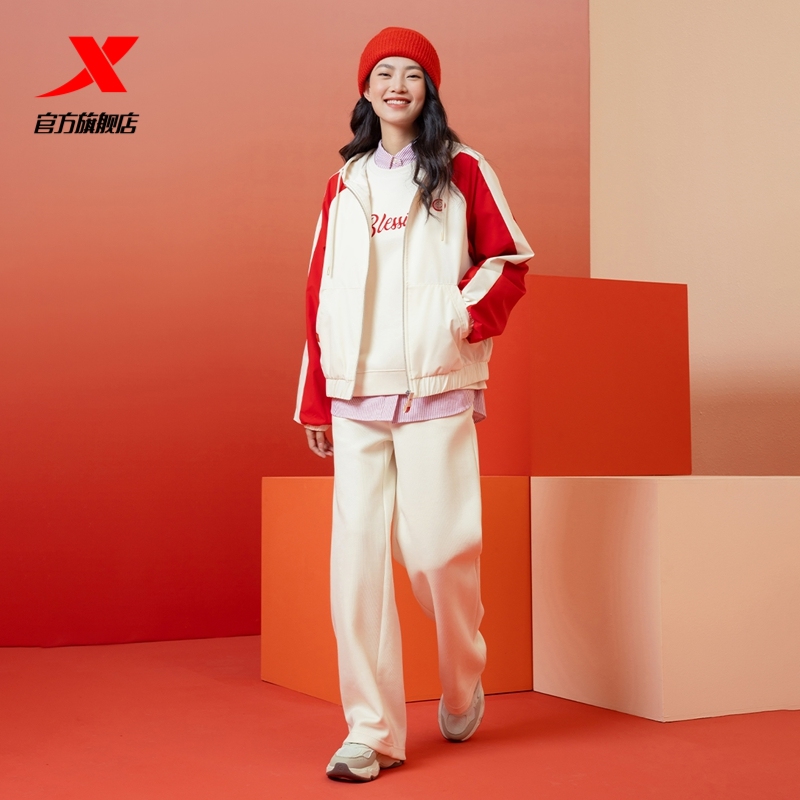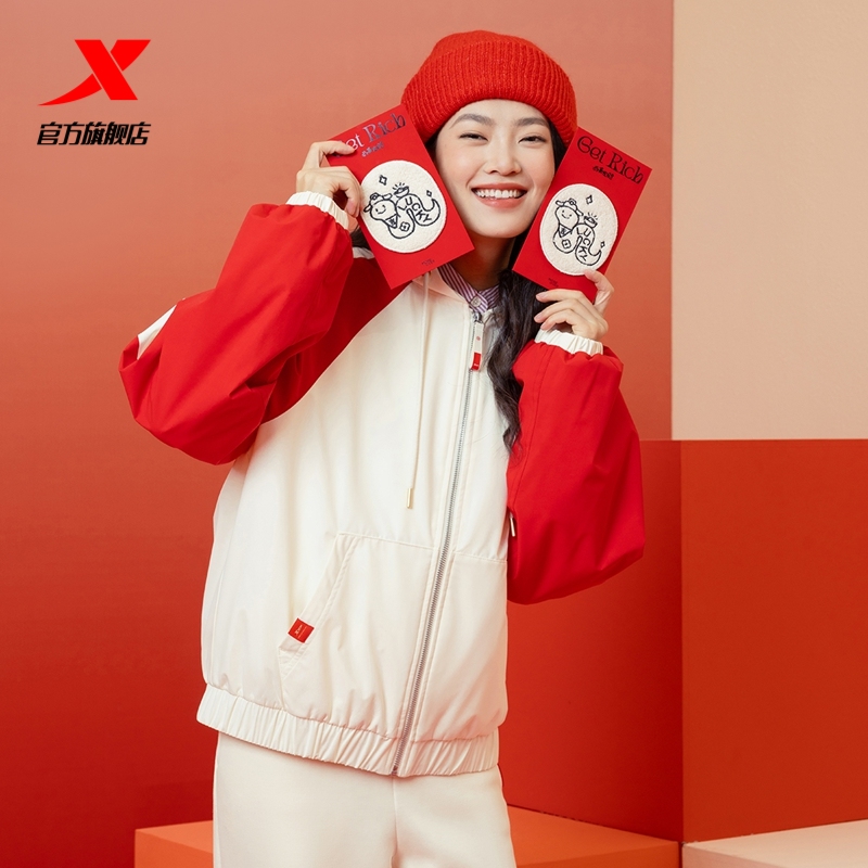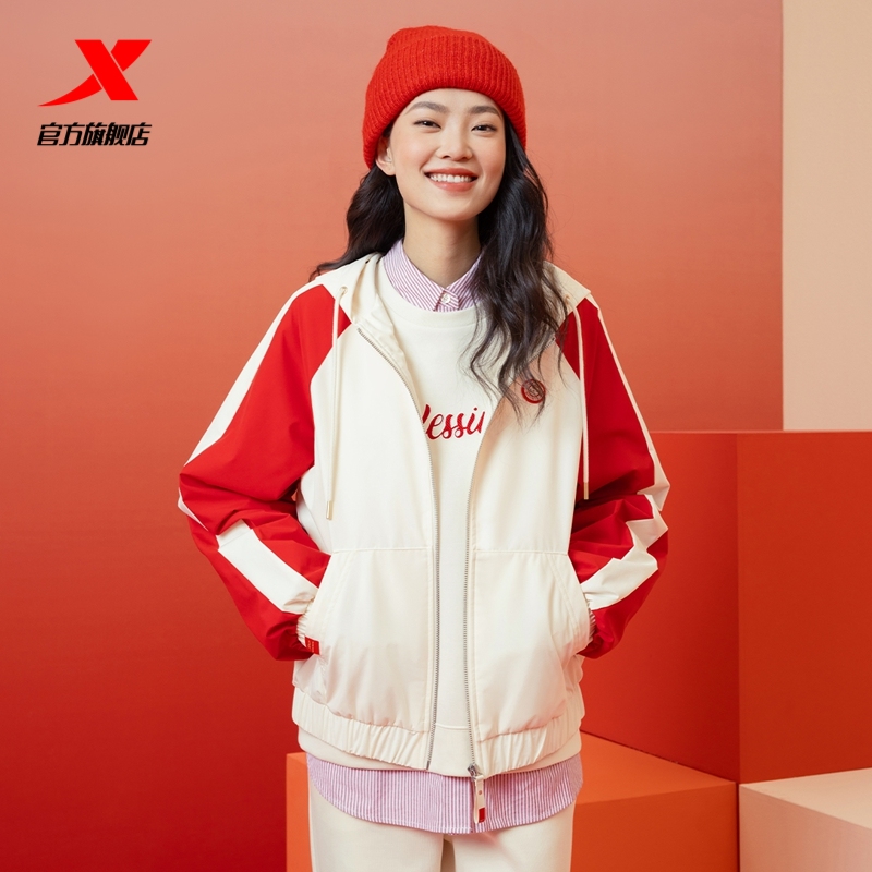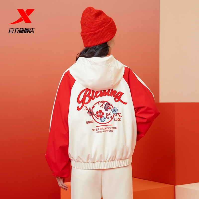 特步新年丨夹克外套女款2025秋季新款拼色茄克运动服975128130472