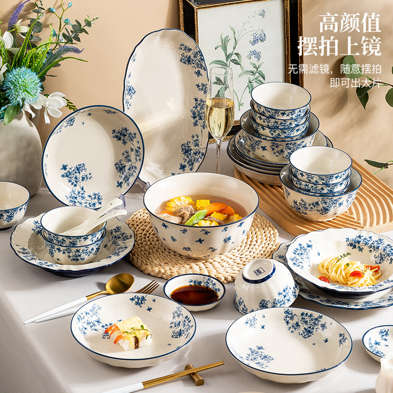 日式家用碗碟套装2025新款陶瓷饭碗盘子创意面碗汤碗鱼盘餐具组合