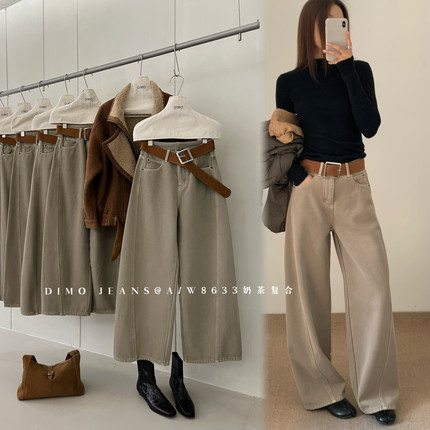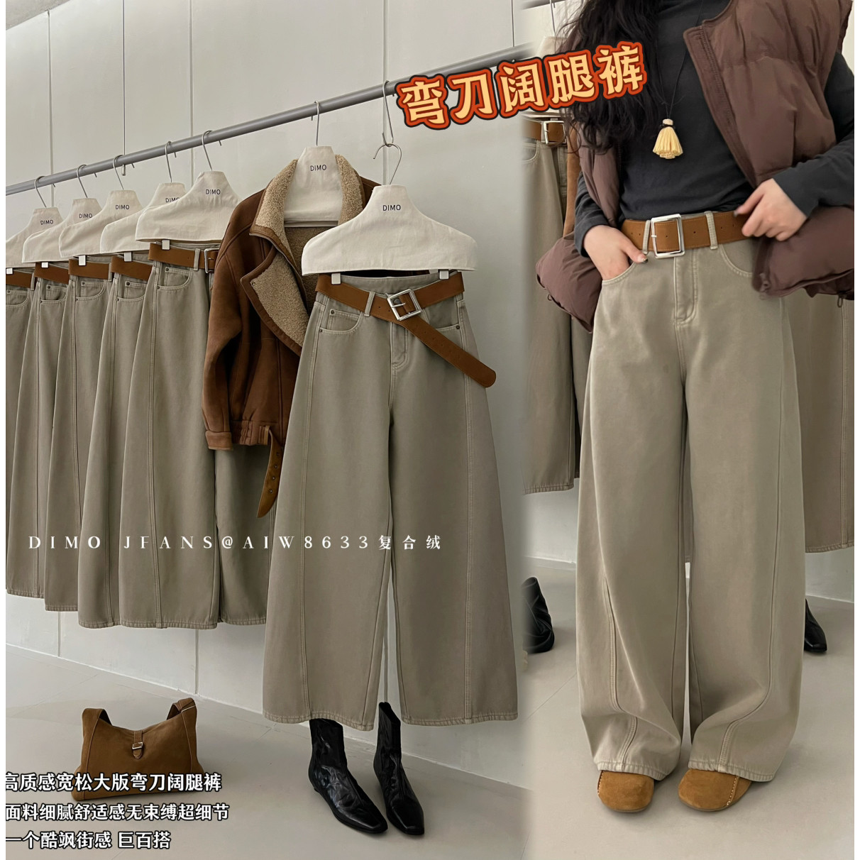 DIMO-弯刀裤牛仔裤(配腰带)(主打一个酷飒街感巨百)8633奶茶复合