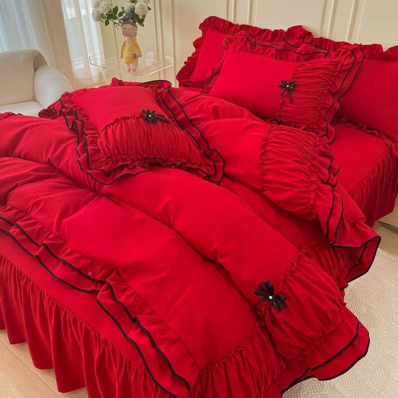 婚庆床上四件套公红色主结婚床单被套上新婚喜遥伊供应庆床用品婚