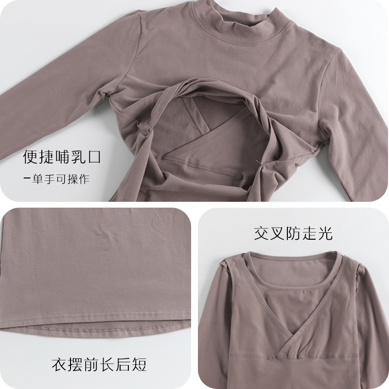 半高领纯棉孕妇秋衣秋裤套装产后喂奶保暖内衣秋冬月子服哺乳上衣