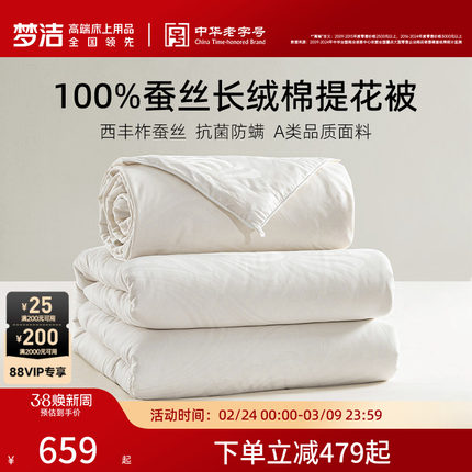 梦洁100蚕丝被子被芯四季通用二合一子母被柞蚕丝抗菌春秋被冬被