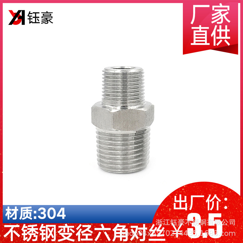 304不锈钢对丝直接异径六角外丝变径大小头外螺纹丝扣暖气接头