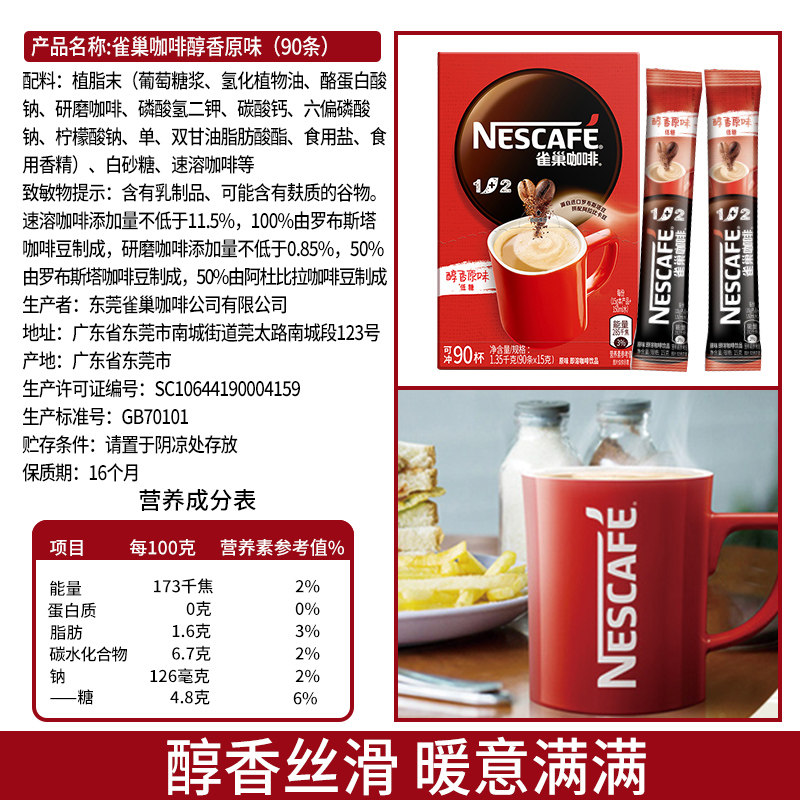 雀巢咖啡1+2原味三合一速溶咖啡散装低糖咖啡粉办公官方旗舰正品