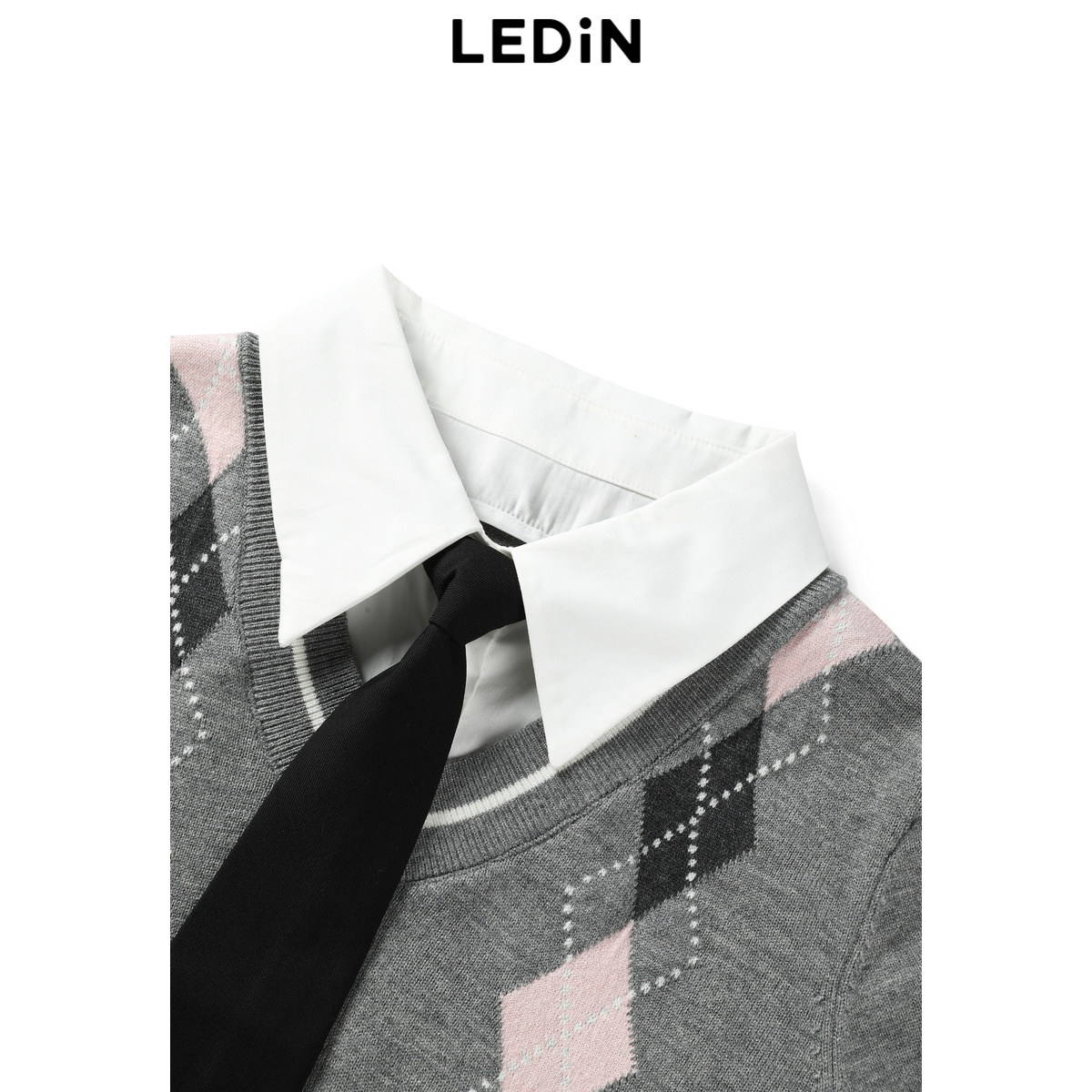 【商场同款】乐町学院风假两件连衣裙冬新款菱格针织裙C2FAE4320