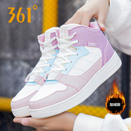 361女鞋高帮板鞋2025冬季新款361度加绒棉鞋冬季保暖休闲运动鞋女