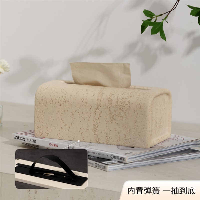 创意圆弧洞石纸巾盒高级感客厅轻奢高档弹簧O吸磁收纳盒桌面抽纸