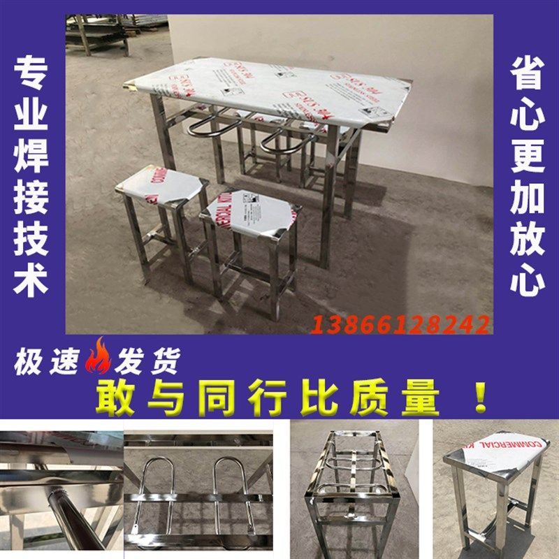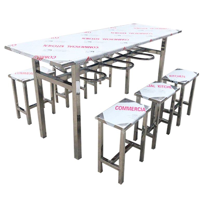 学校学生公司员工快餐店食堂餐桌4人 6人8人不锈钢餐桌椅挂凳子款