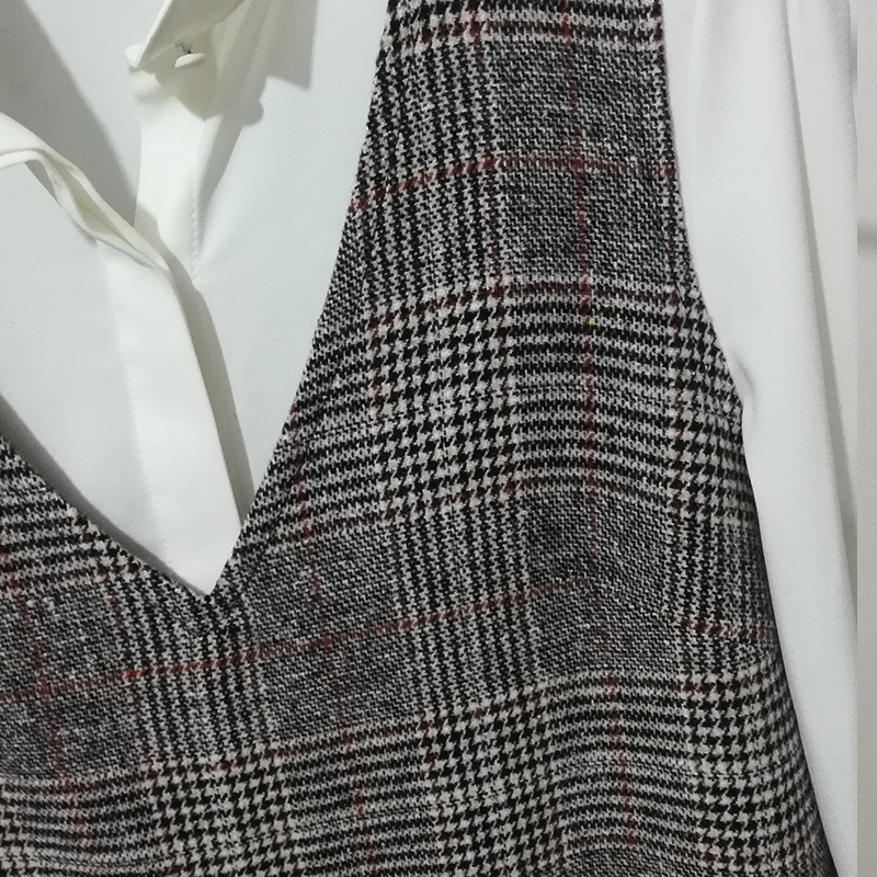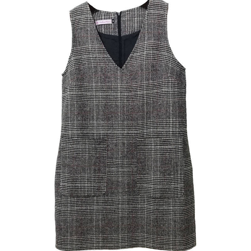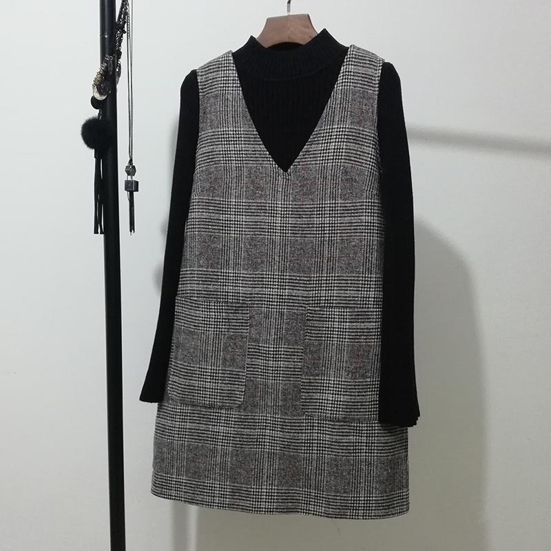 2024秋冬新款大码V领格子背心裙胖MM中长款千鸟格马甲裙文艺裙子