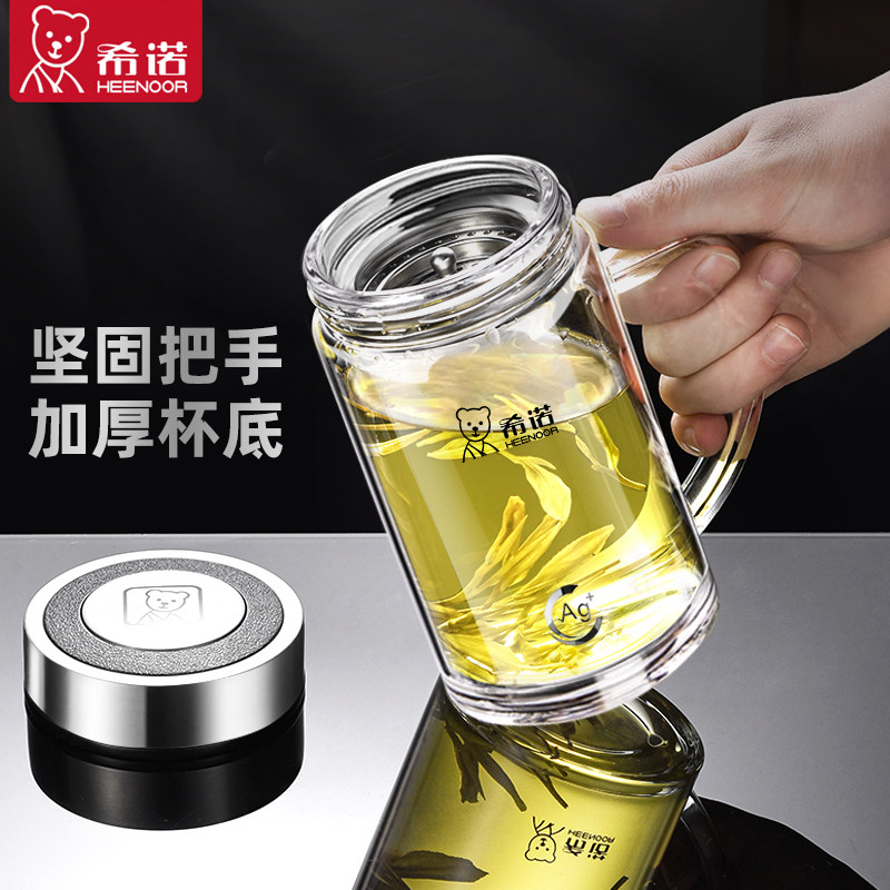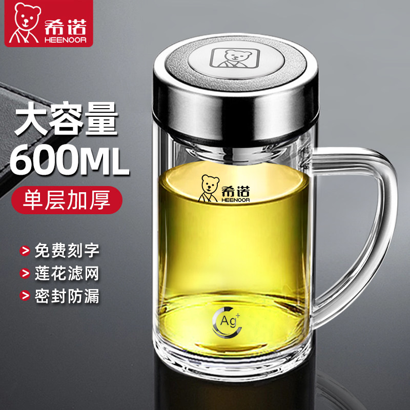 正品希诺玻璃杯带把手水杯男新款大容量单层加厚茶杯办公抗菌杯子