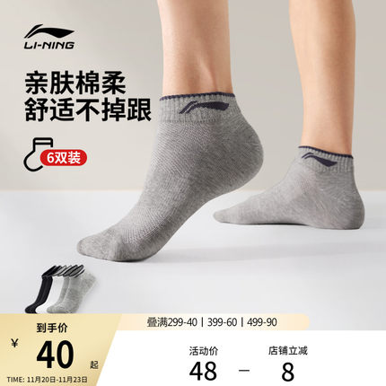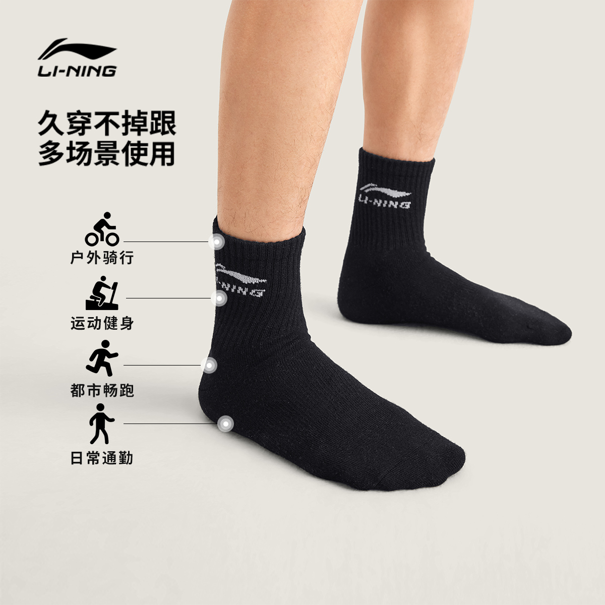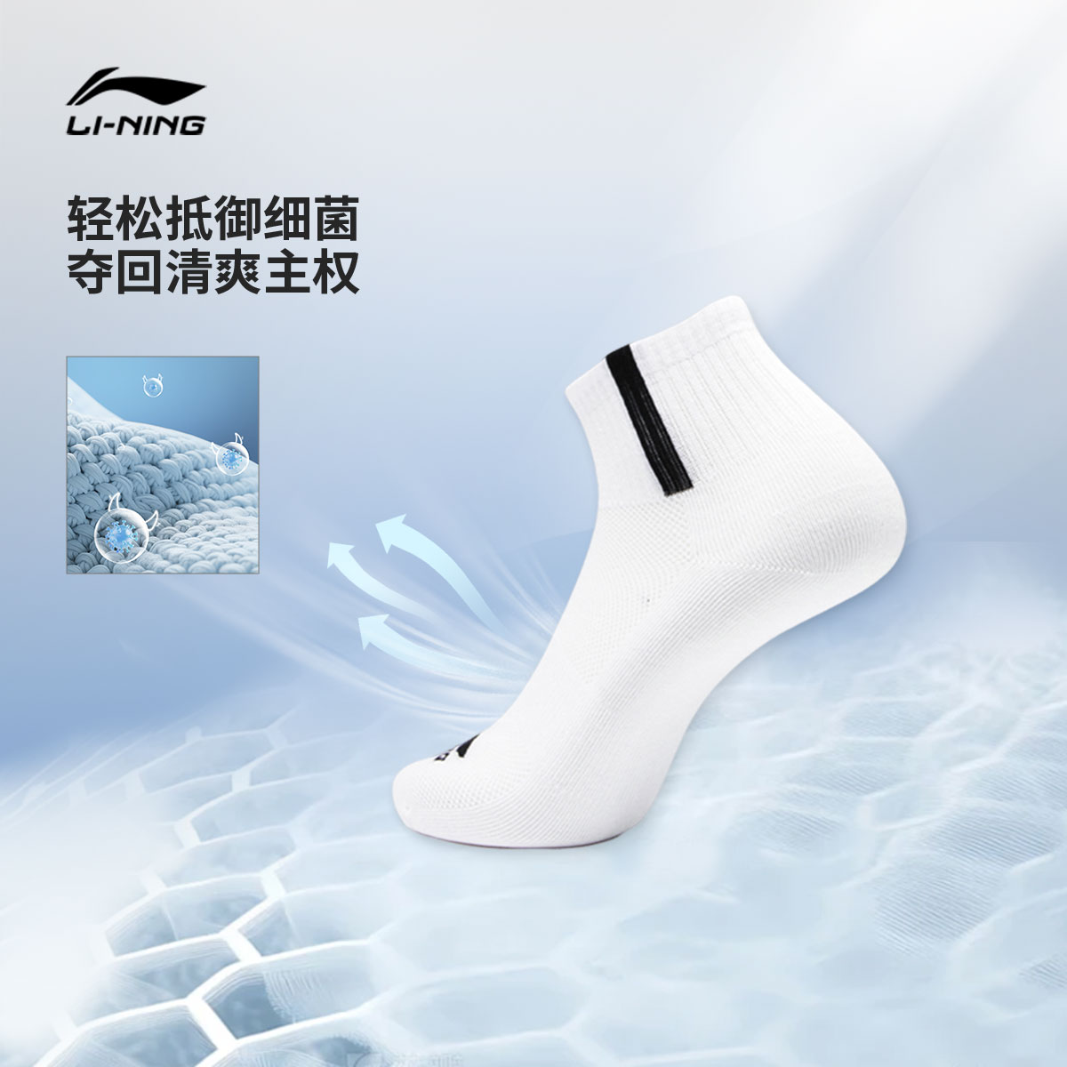 李宁袜子男女款正品青少年专业跑步运动防臭抗菌吸汗黑色棉质短袜
