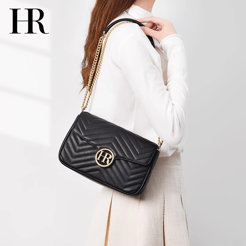 HR赫莲娜包包2025年新款轻奢女包时尚高级感牛皮链条单肩包斜挎包