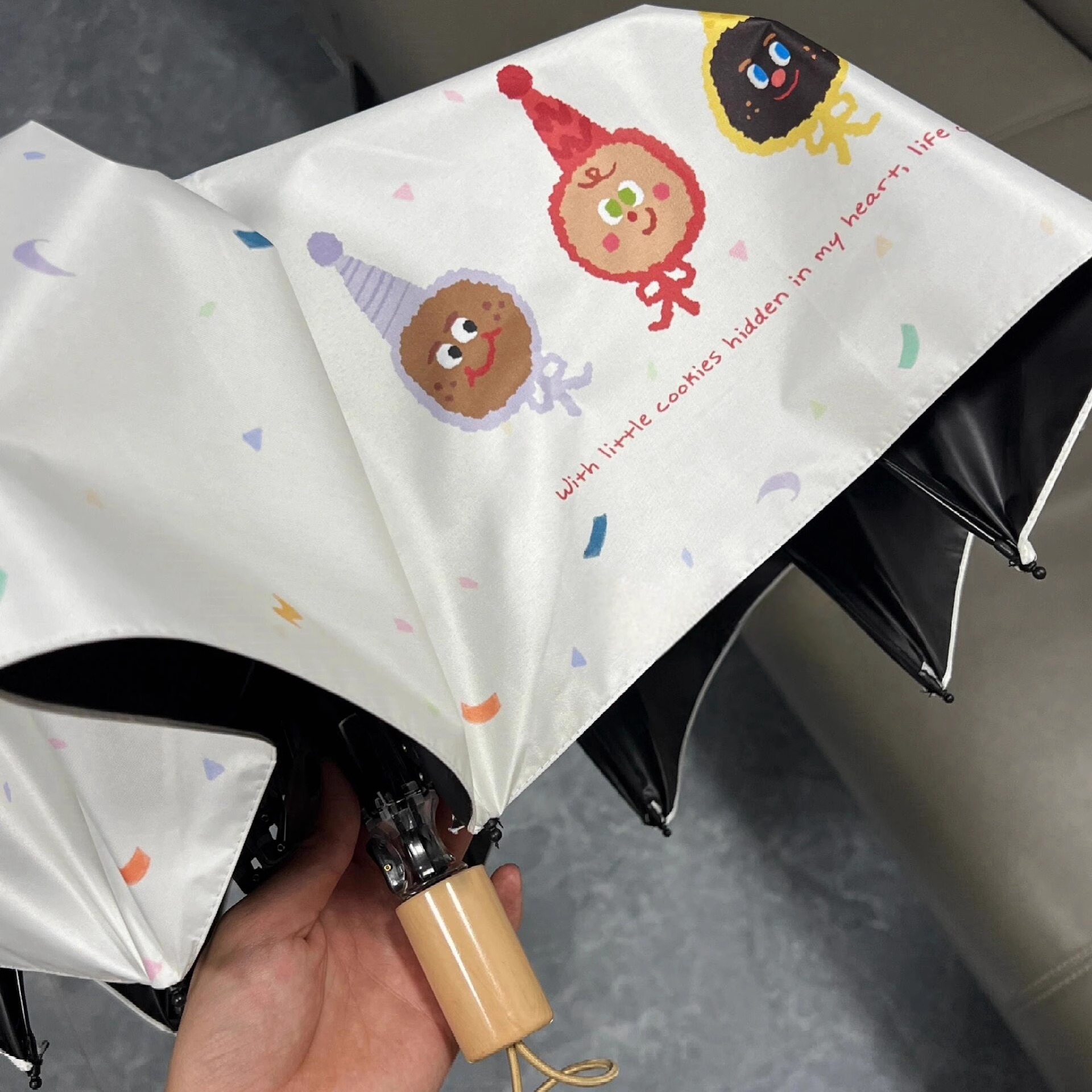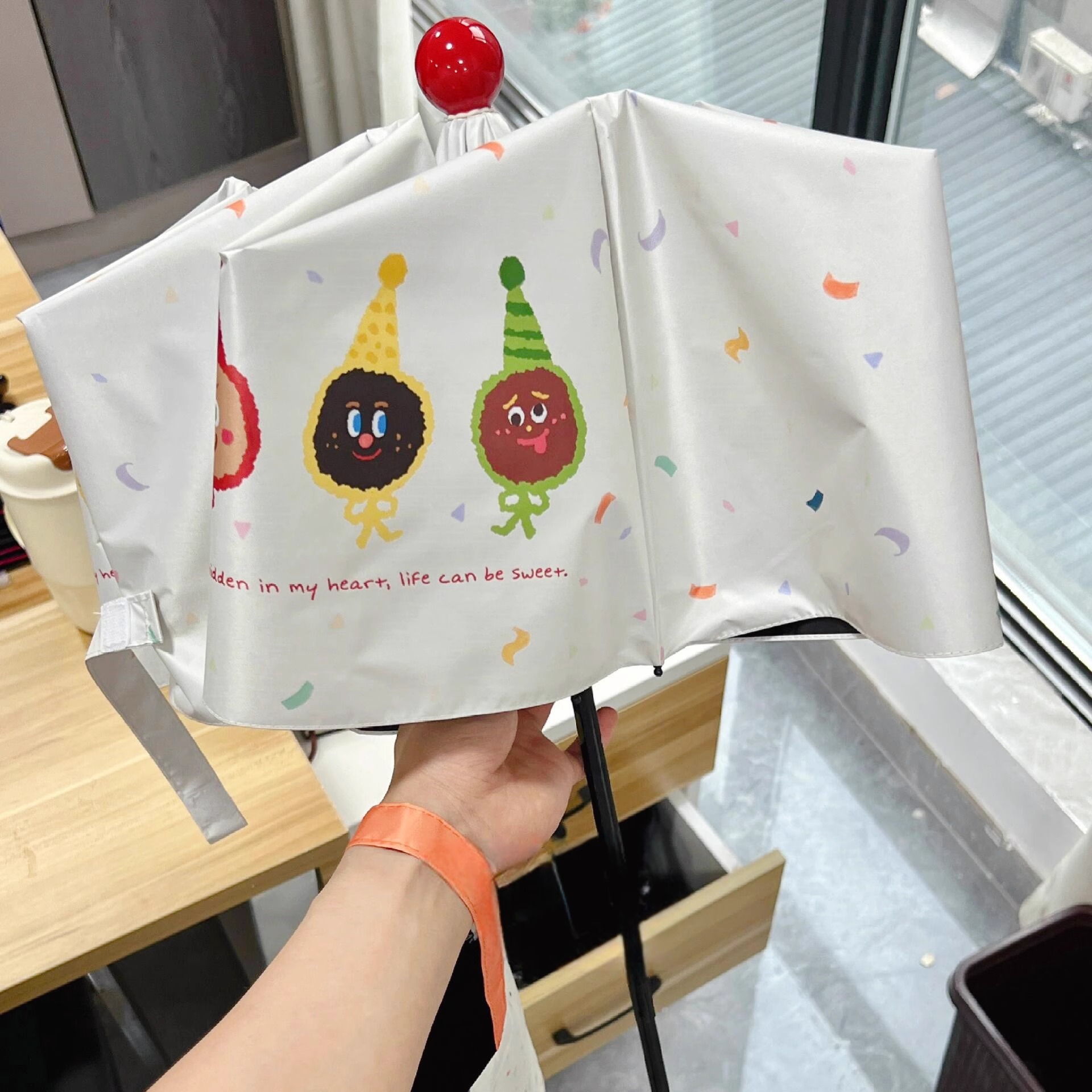 红球饼干怪兽晴雨伞两用女防晒防紫外线折叠遮阳伞黑胶手动太阳伞
