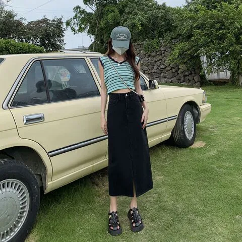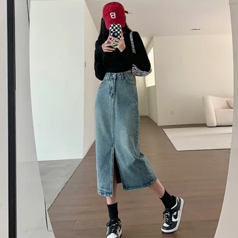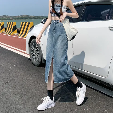 长裙时尚春秋开叉insa字2022半身裙包臀牛仔新款女中长款高腰