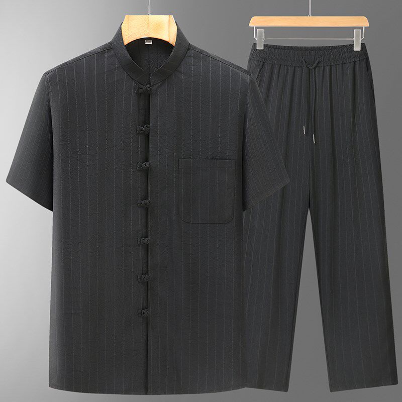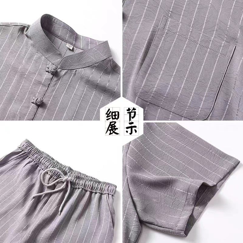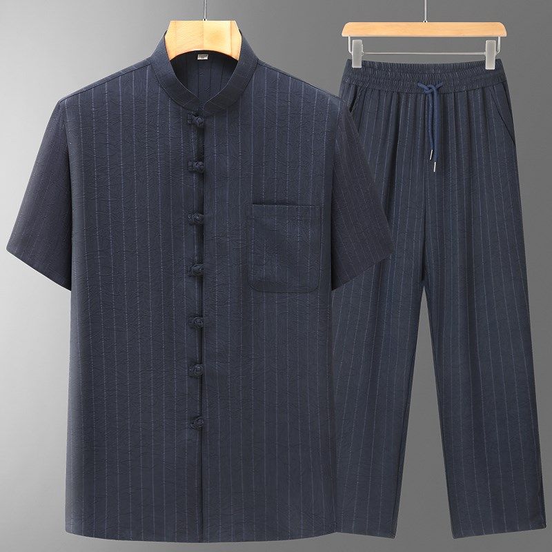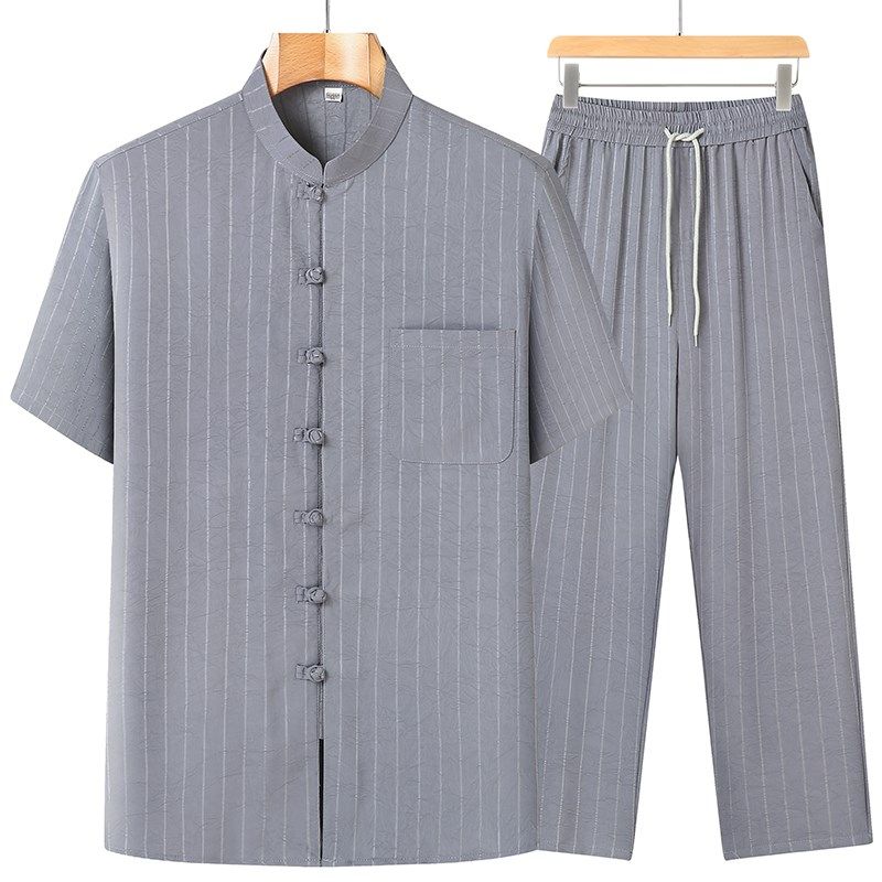 夏季短袖套装中老年唐装男50岁60爸爸夏装父亲两件套爷爷衣服衬衫