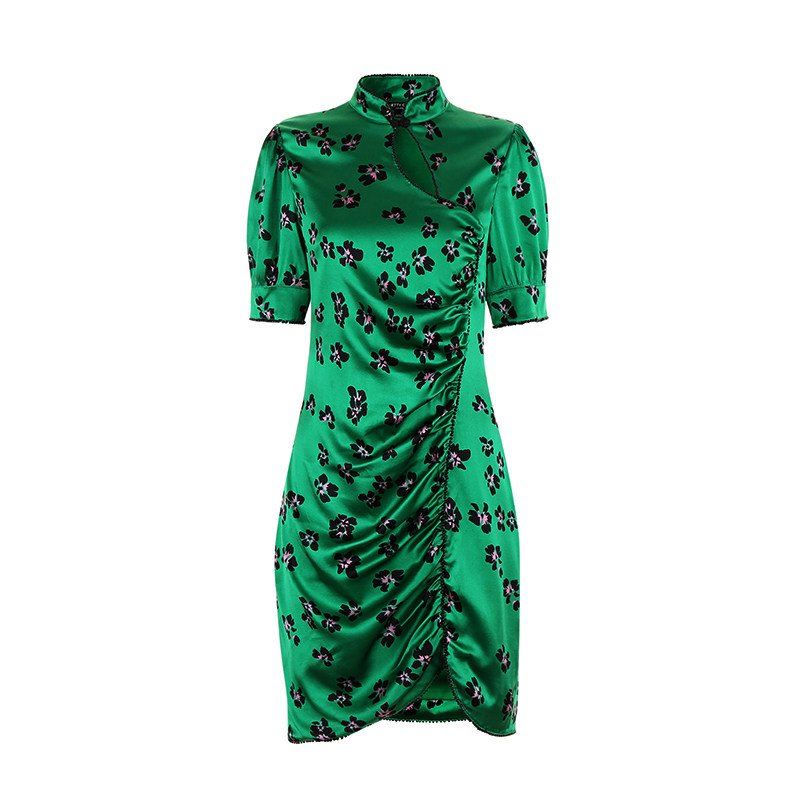 BettyChow珍藏!真丝绿花改良版小旗袍 手工缝制730颗连衣裙