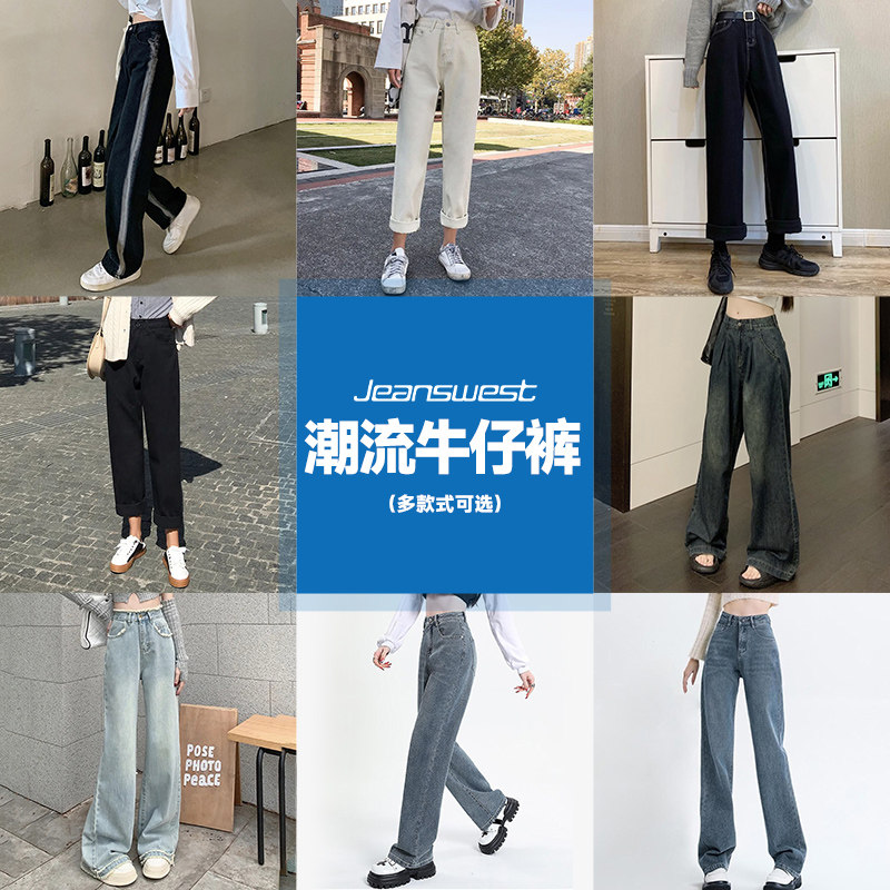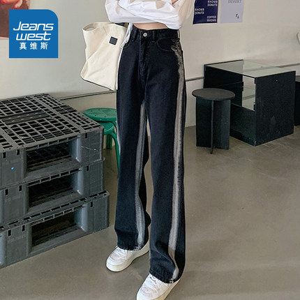 LEP真维斯女装时尚显瘦牛仔裤2025春季新款高腰设计感牛仔长裤女