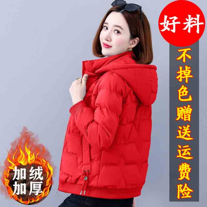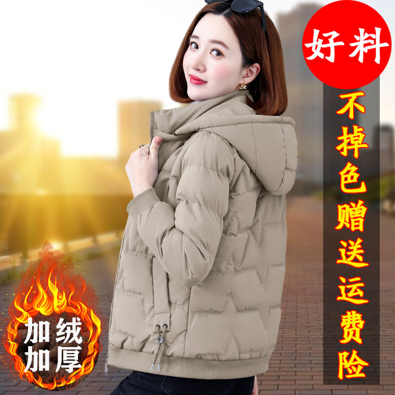 啄木鸟正品短款羽绒棉服女冬季2025新款中年妈妈加绒棉服保暖外套