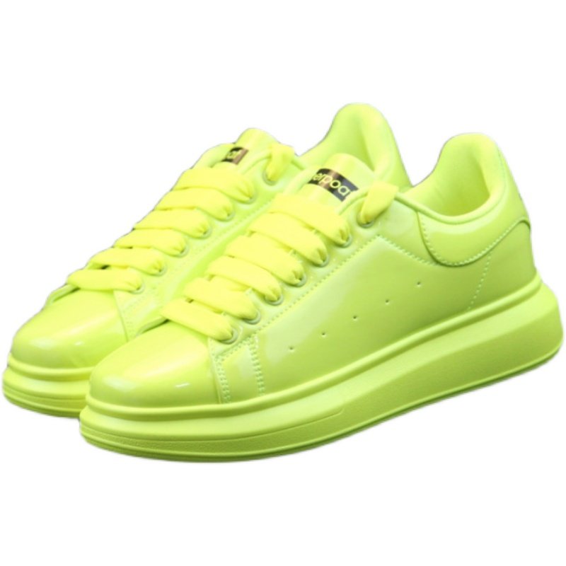 糖果色小白鞋男鞋2021夏季网红厚底内增高漆皮运动休闲荧光黄板鞋