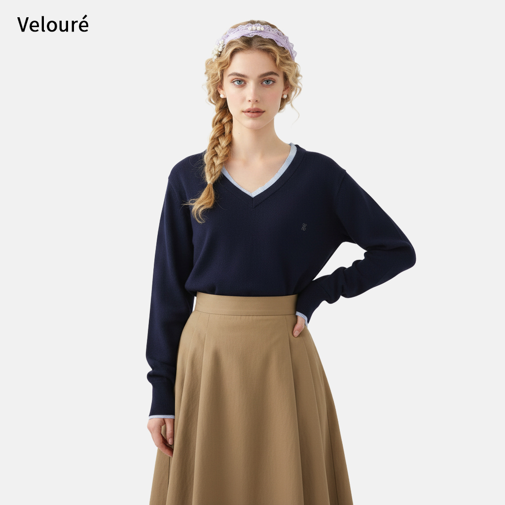 韩版V领撞色拼接V领针织衫毛衣外套上衣宽松休闲学院风小众女