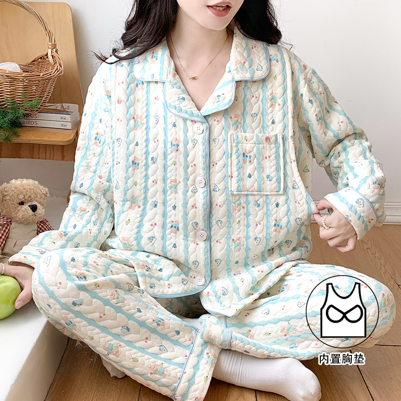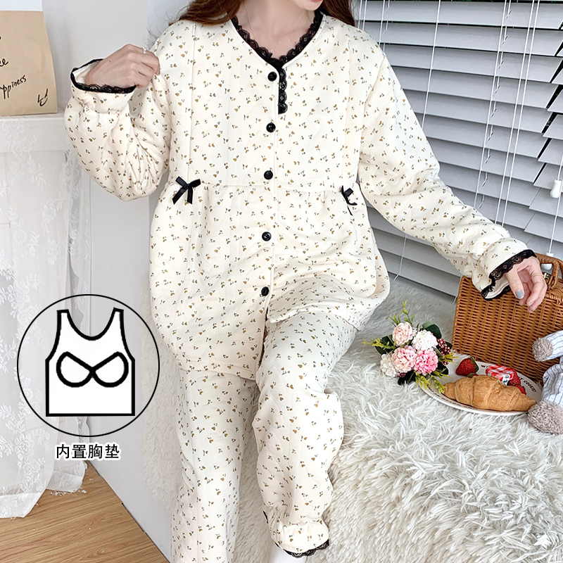 空气棉月子服带胸垫宽松加厚产妇产后哺乳睡衣秋冬季保暖孕期喂奶
