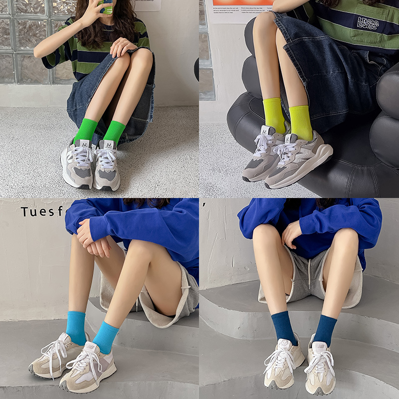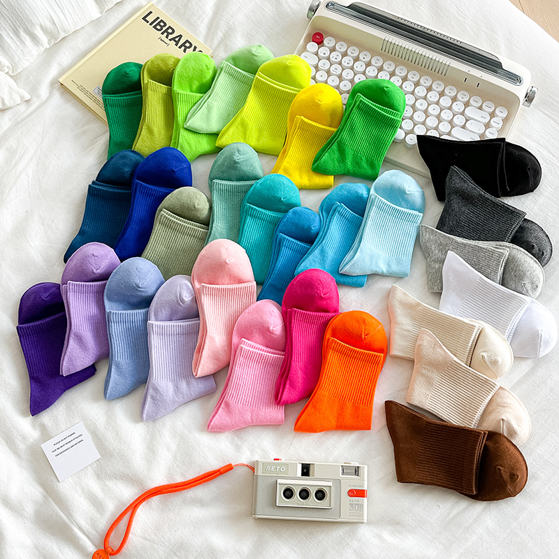 5双纯色中筒袜男女学生白色纯棉ins潮春夏薄款彩色低帮运动短袜