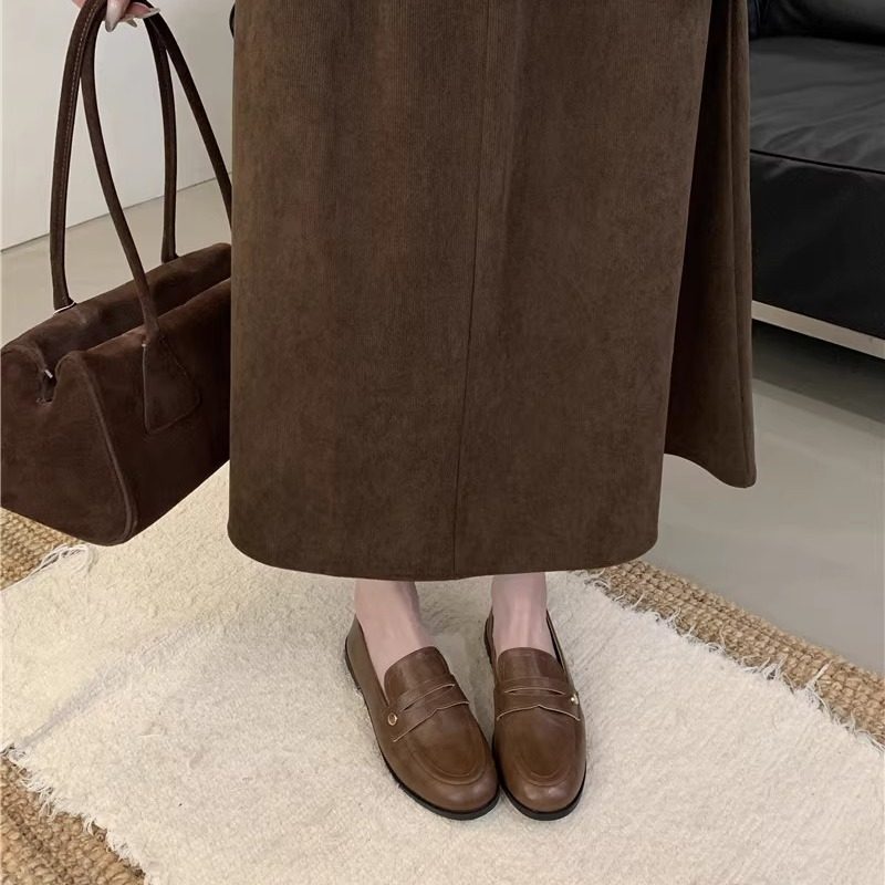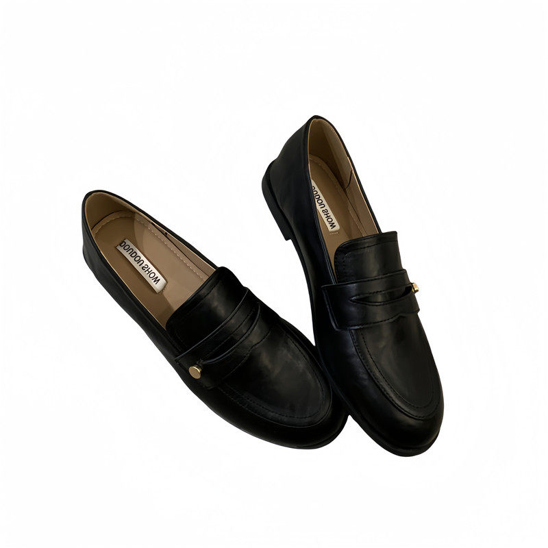 法式休闲复古英伦圆头深口通勤黑色小皮鞋女单鞋秋季新款乐福鞋子