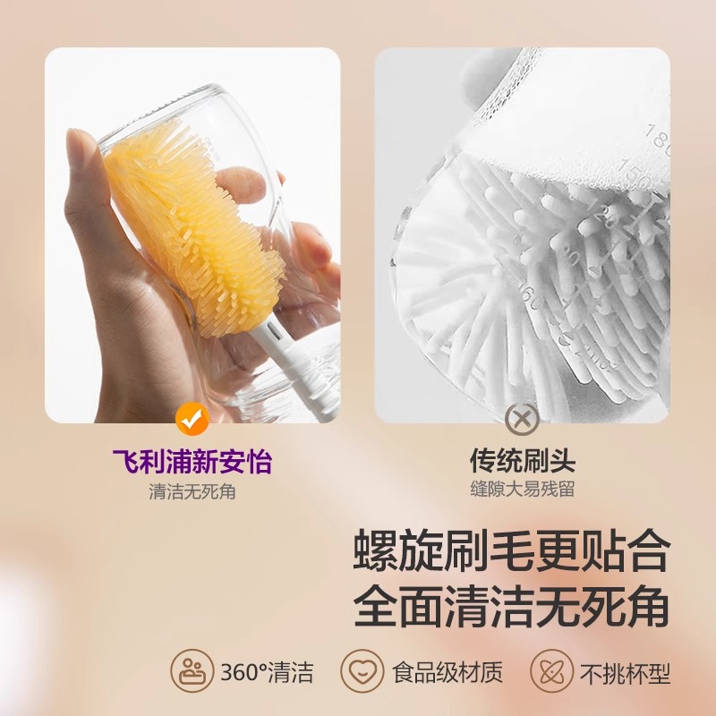 飞利浦新安怡奶瓶刷清洗刷新生婴儿专用长柄硅胶奶嘴刷三合一套装