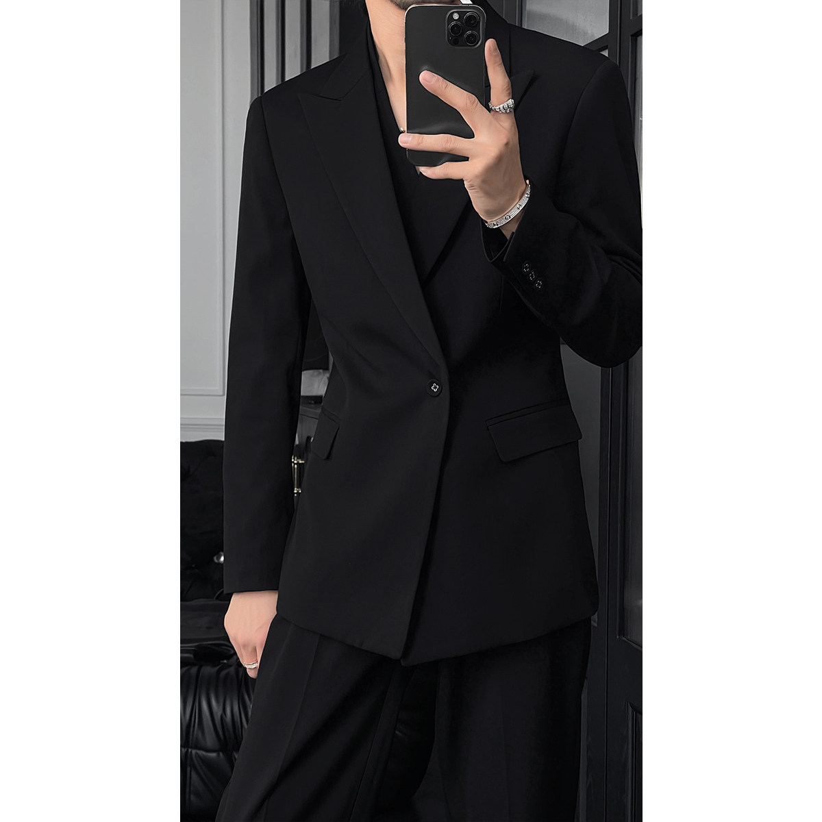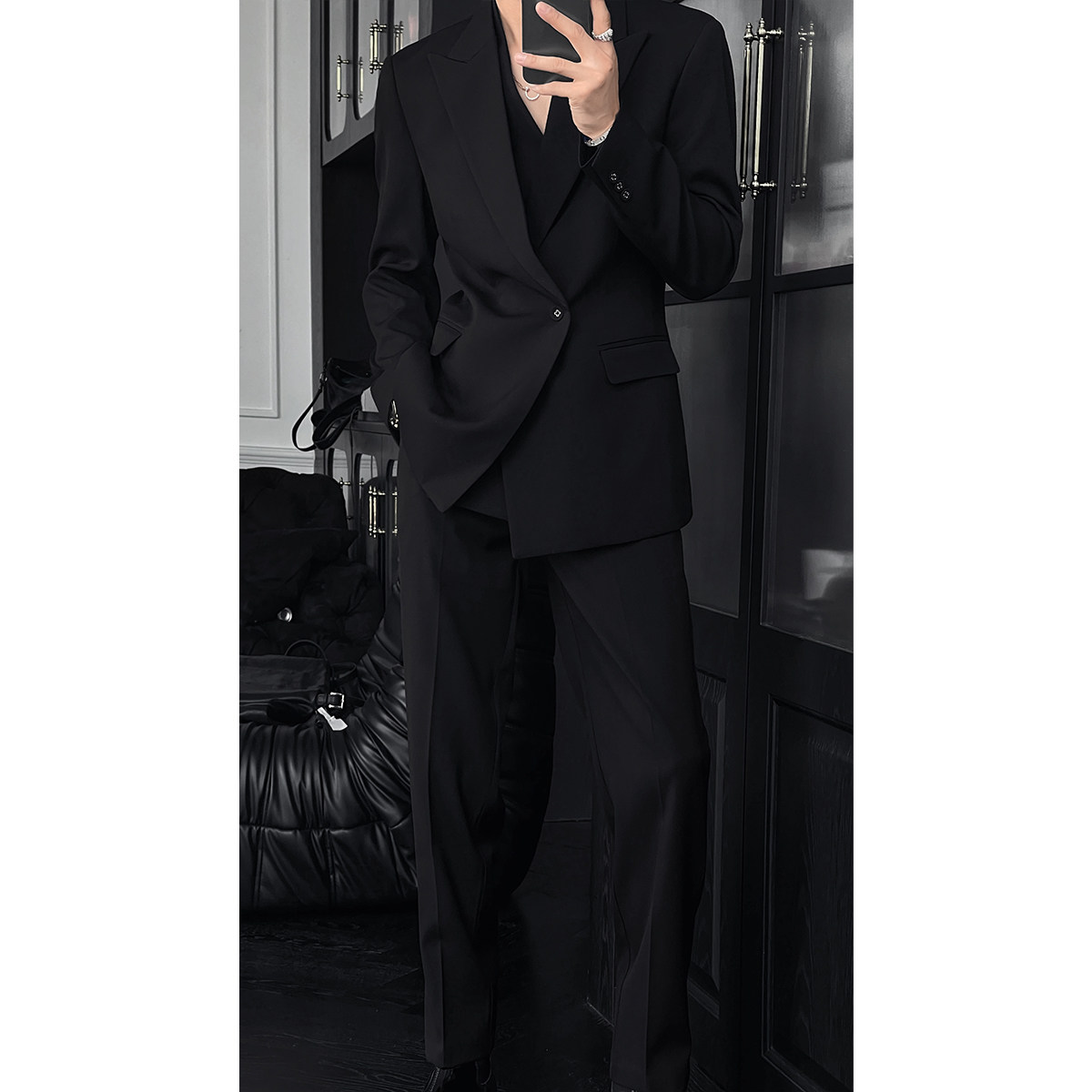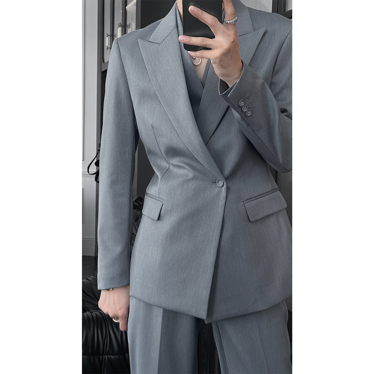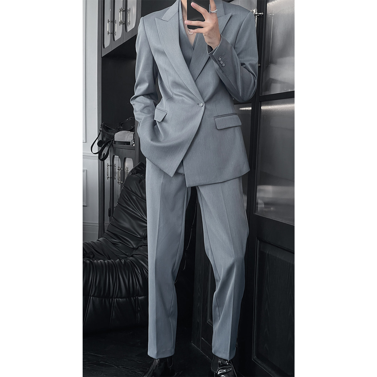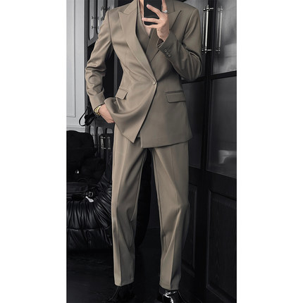 龙叨叨秋季新款潮流英伦风高级感百搭廓形双领西服修身西裤套装