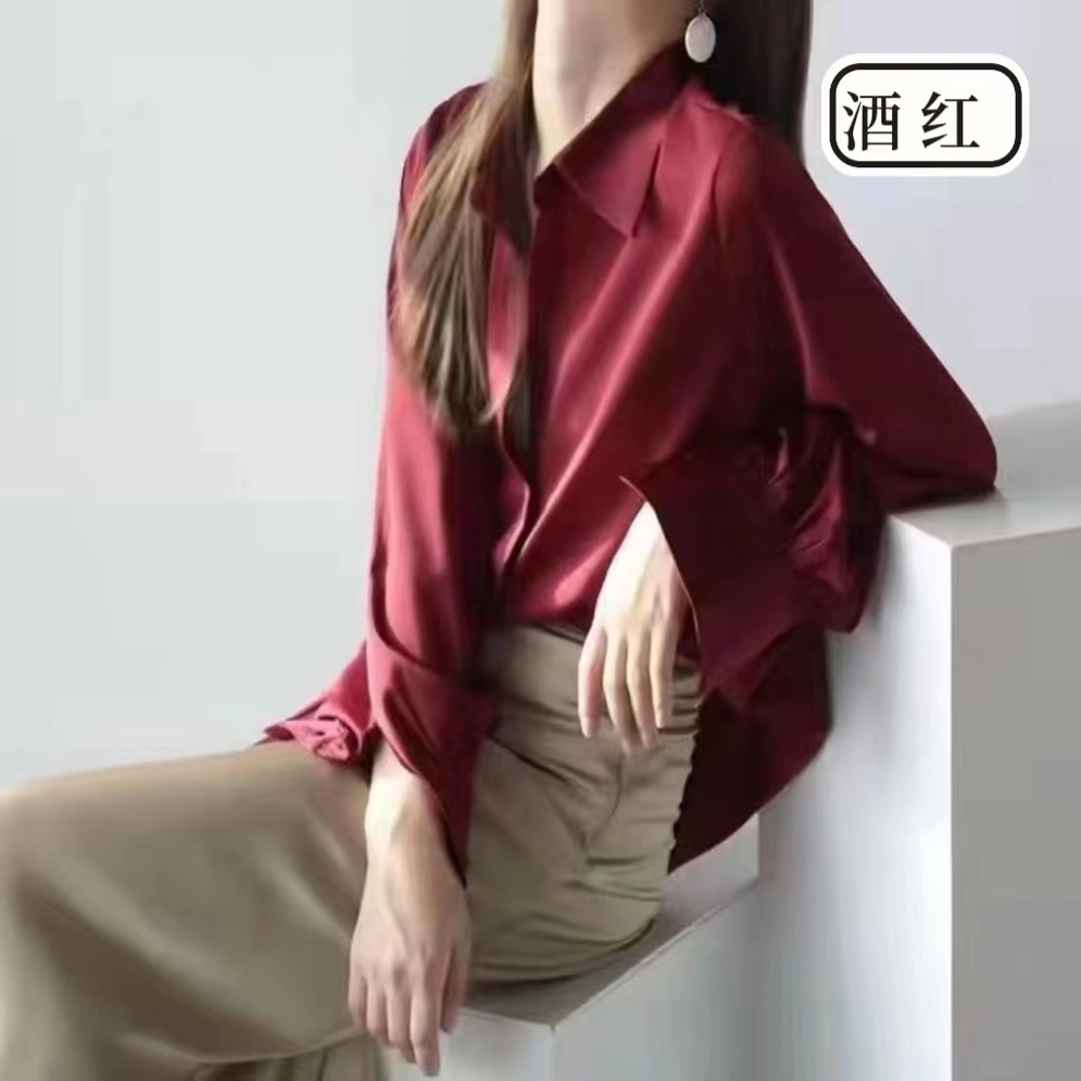 新款夏装真丝缎面女衬衫时尚长袖衬衣醋酸纤维重磅凉爽上衣抢