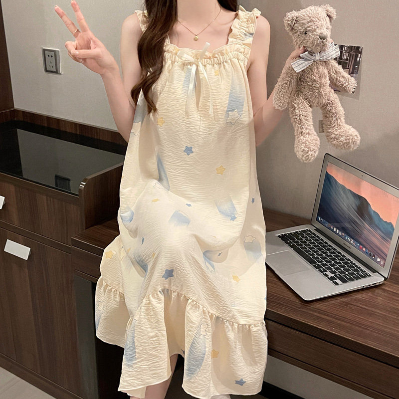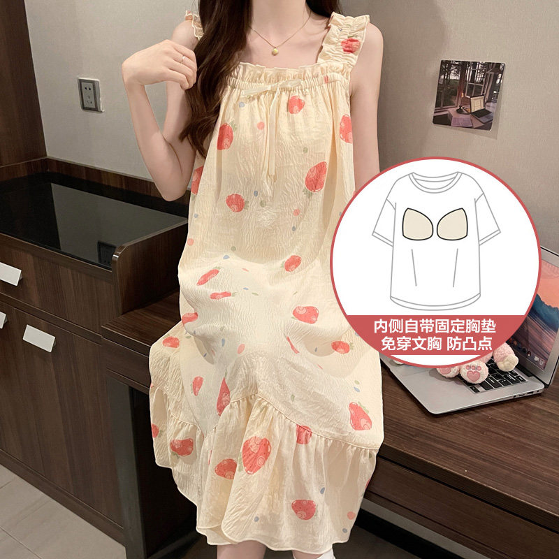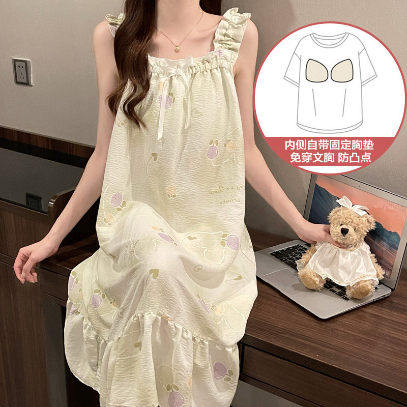 晚眠带胸垫性感吊带睡裙女夏季纯棉薄2025年新款睡衣夏天水墨画