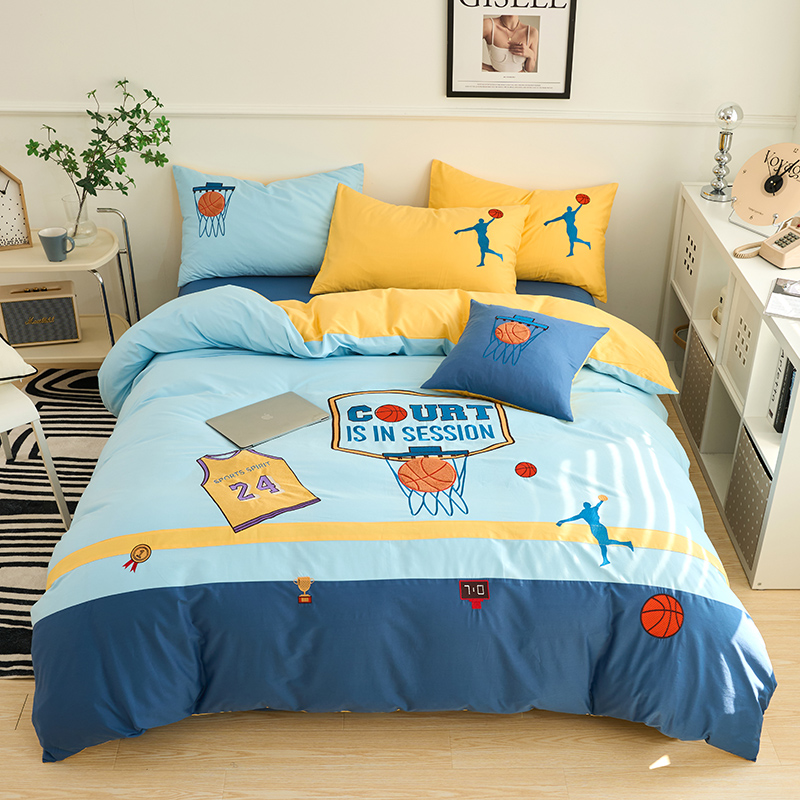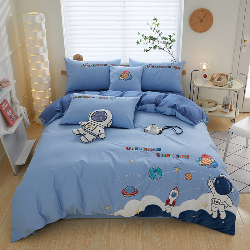 全棉磨毛儿童卡通刺绣保暖四件套