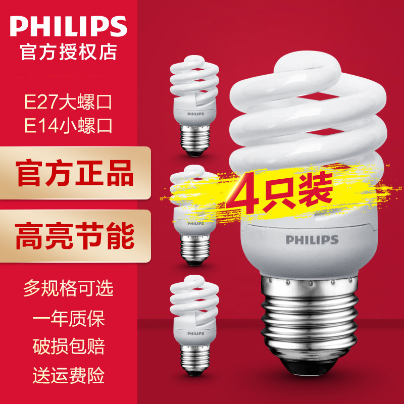 飞利浦节能灯泡e14e27螺口家用标准螺旋5w8w12w15w20w23w超亮灯源