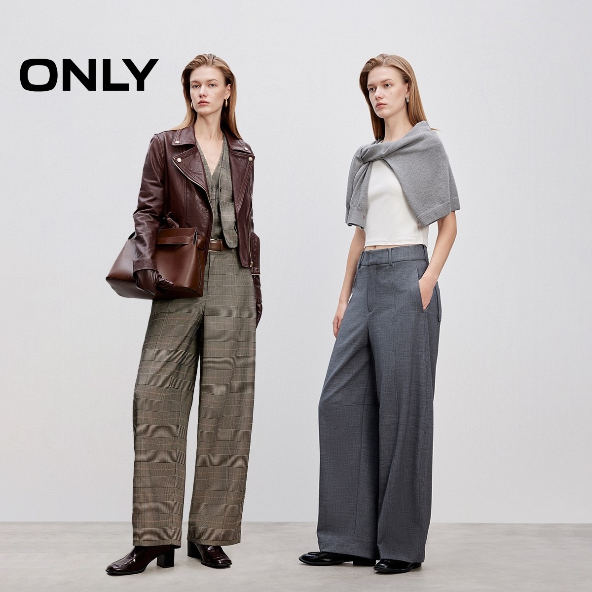 ONLY2025秋冬新款通勤风垂坠有型高腰宽松气球阔腿裤休闲裤女
