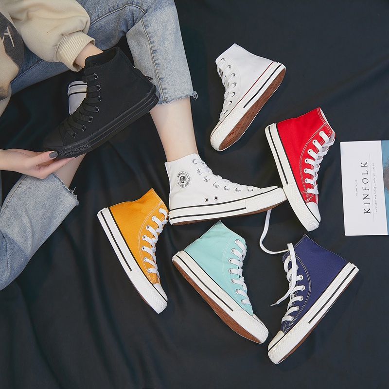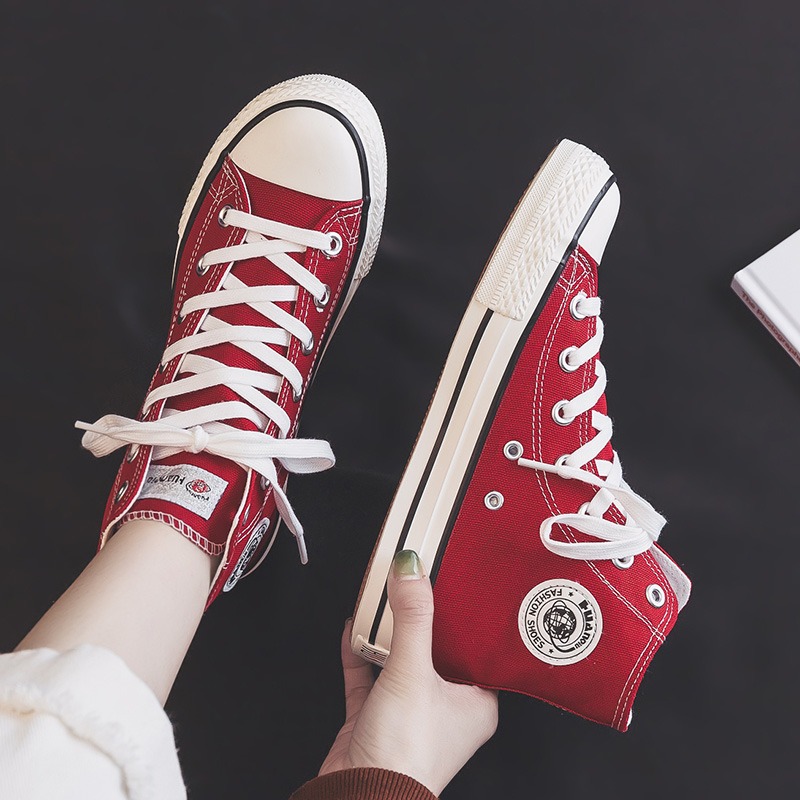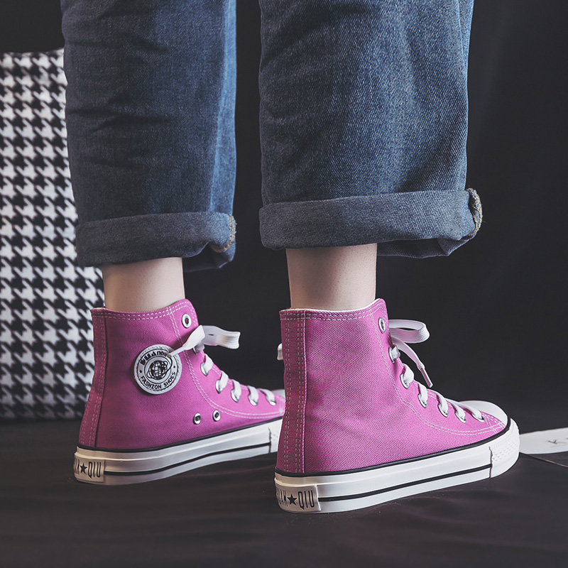 环球高帮帆布鞋女粉色1970S美拉德正红色板鞋百搭经典款高邦鞋子