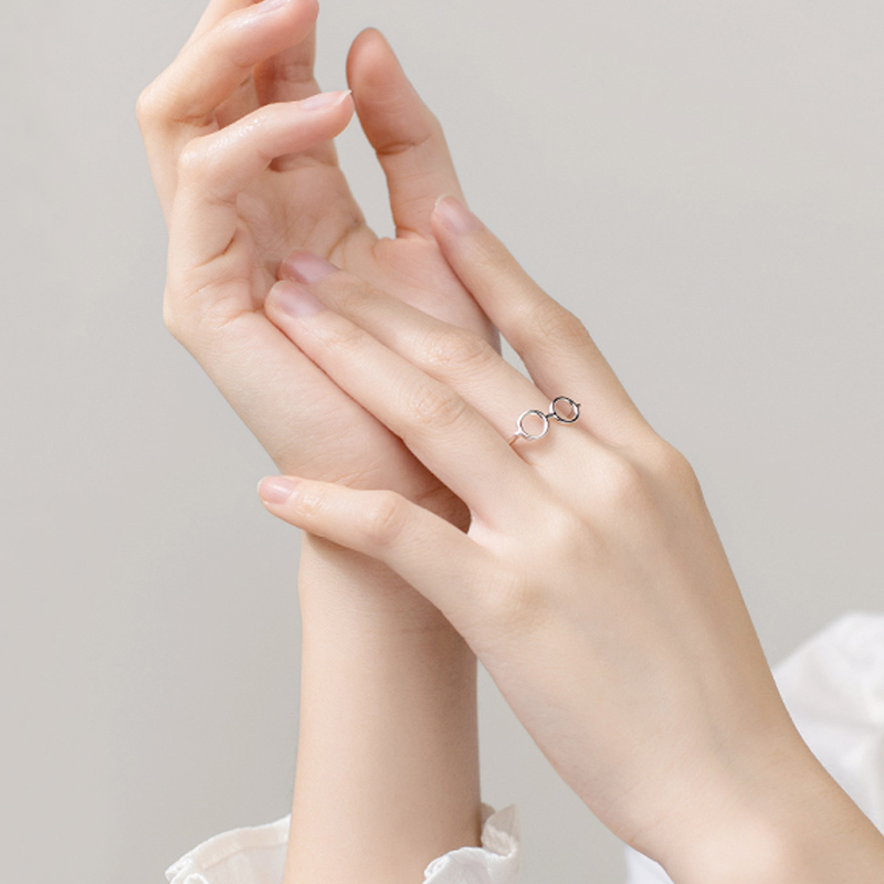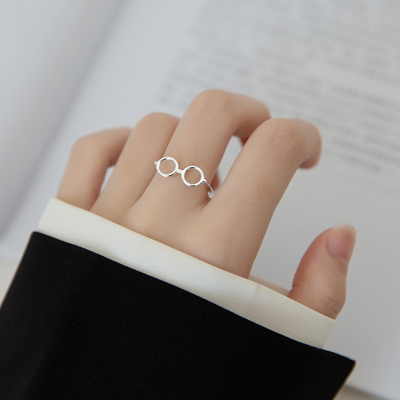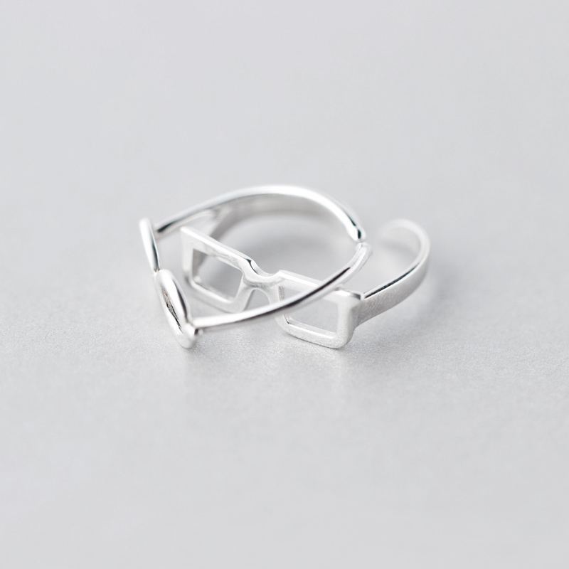 眼镜情侣戒指男女s925纯银独特闺蜜对戒可调节小众设计感食指指环