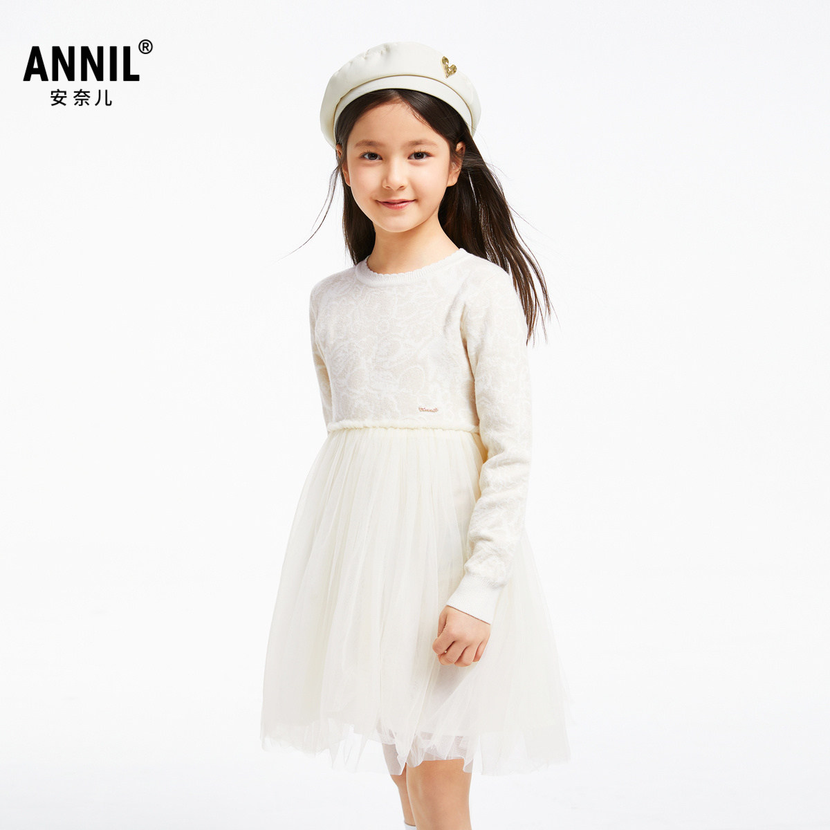 【商场同款】安奈儿童装女童连衣裙秋毛衣拼纱AG433638
