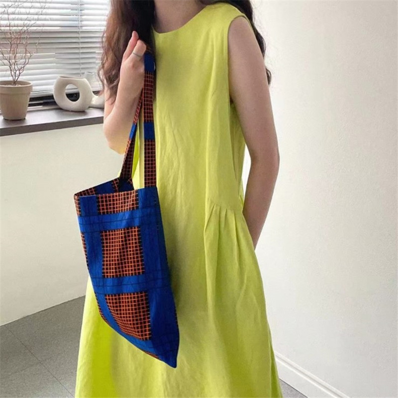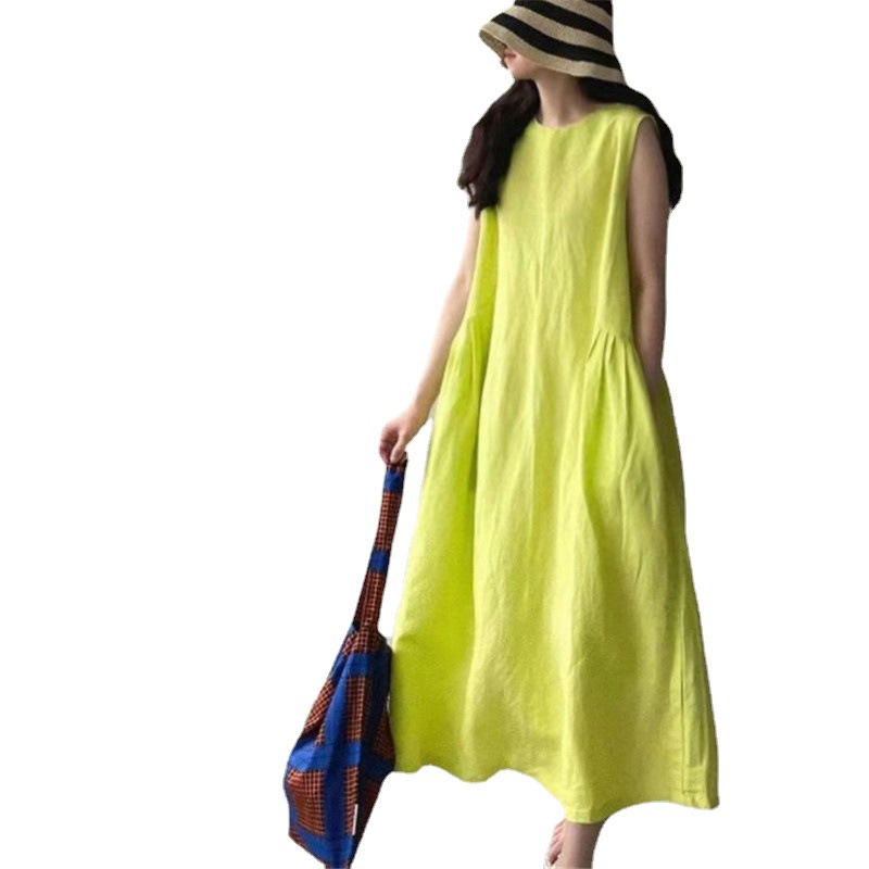 韩国chic无袖背心宽松显瘦过膝连衣裙女2023夏季长款棉麻裙