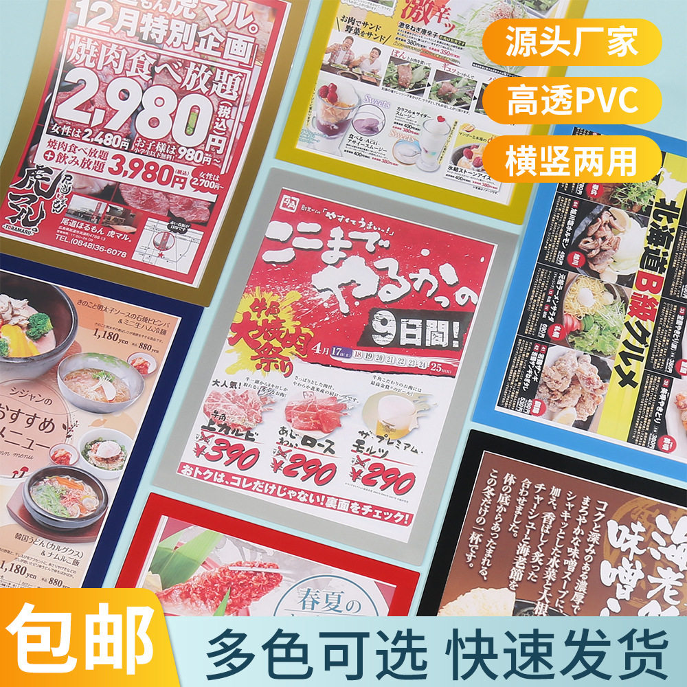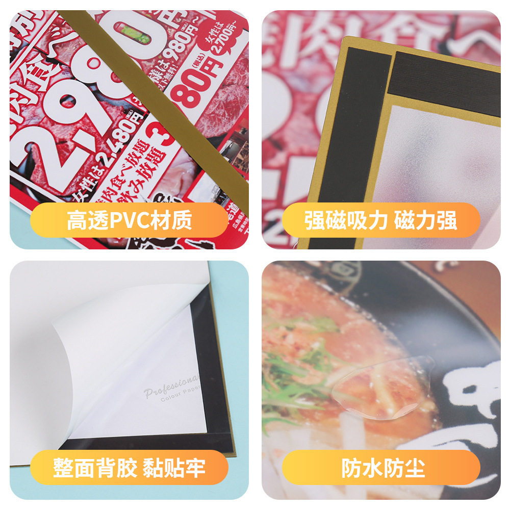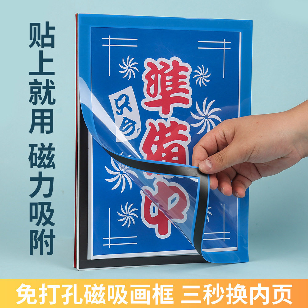 PVC防水防尘竖版横板海报证书软磁贴透明免打孔A3画框A4磁吸相框